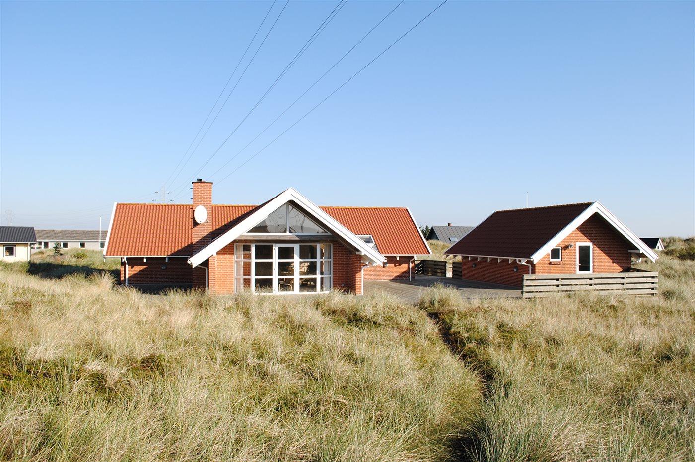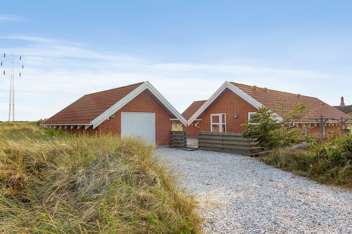 Ferieboligen er beliggende på en 1200 m² stor klitgrund. Der er 800 m til havet. Nærmeste forretning er beliggende i en afstand af 3000 m. Til ferieboligen hører 100 m² terrasseareal. Der er redskabsrum. Der er garage til rådighed. Parkering ved ferieboligen.
