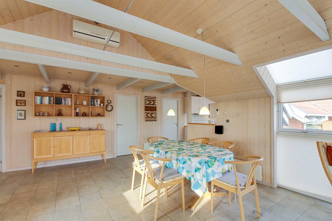 Sommerhuset egner sig til 6 personer samt 1 barn op til 3 år. Ferieboligen er på 110 m² og er bygget i 2006. Det er ikke tilladt at medbringe husdyr. Der er gulvvarme i stuen. Ferieboligen har vaskemaskine. Tørretumbler. Frysekapacitet på 41 liter. Der er desuden brændeovn. Til de små er der 1 stk. barnestol.