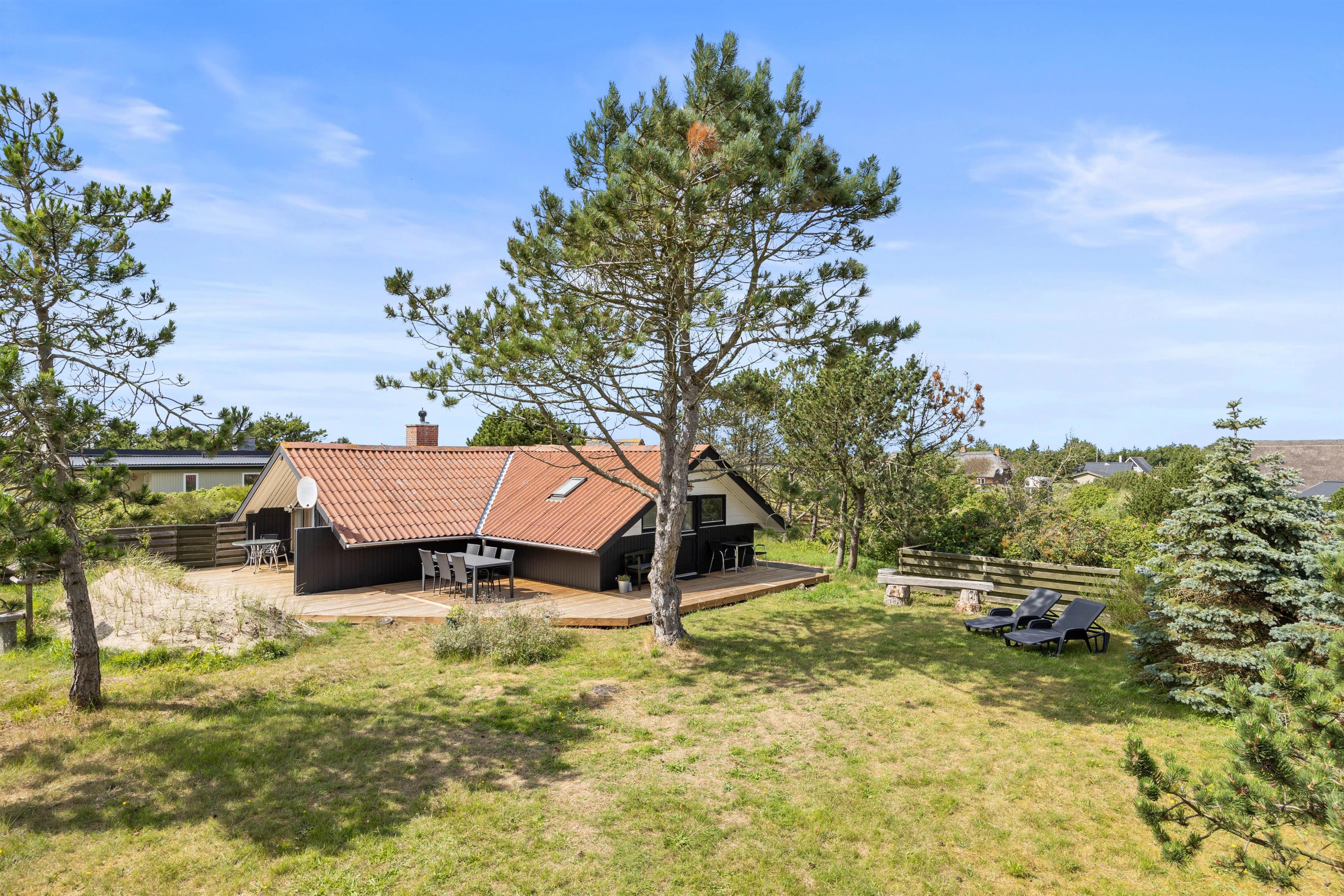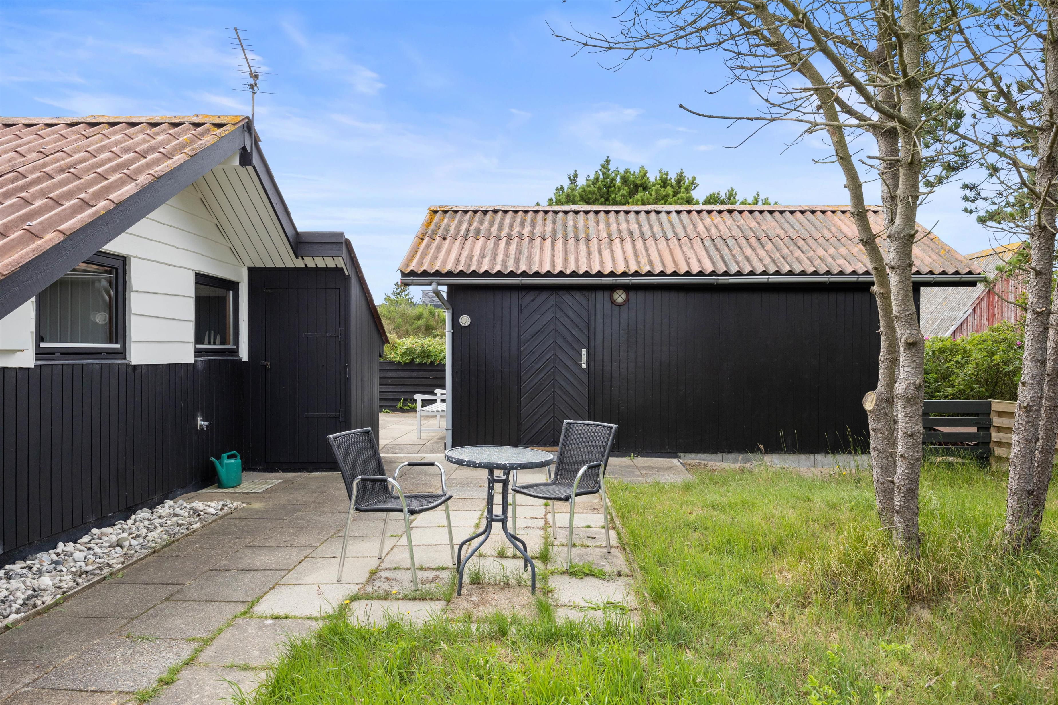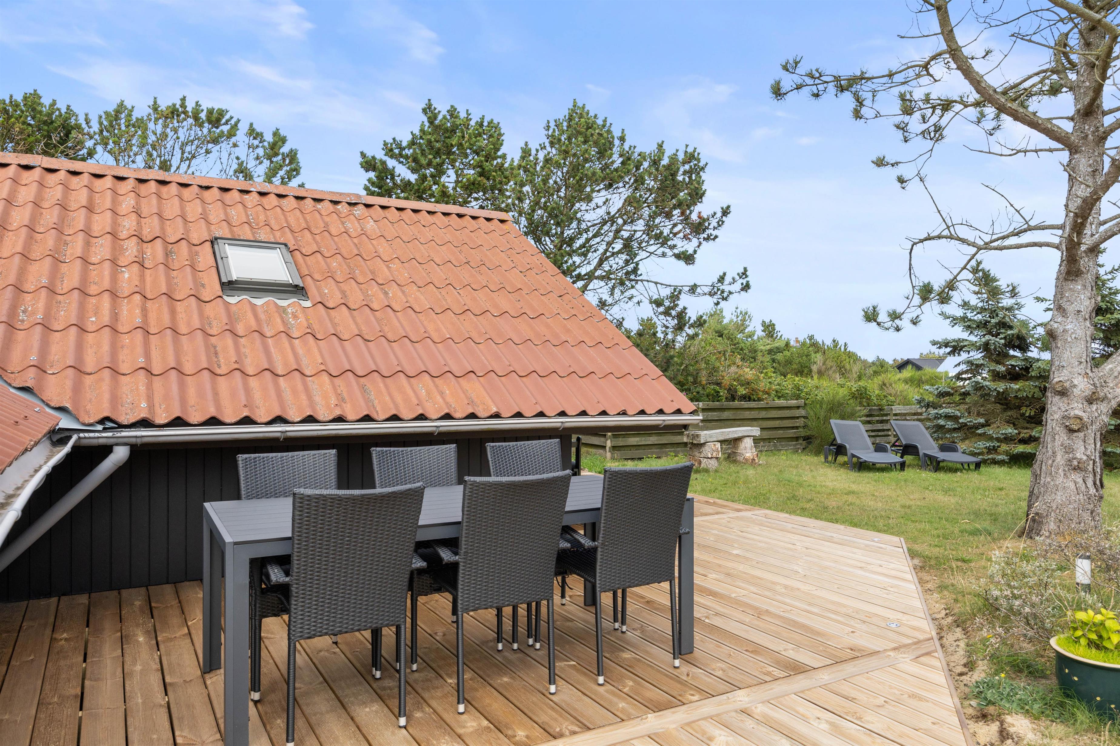 På sommerhusets terrasse står der havemøbler og liggestole klar til jer, så I kan finde jer en god plads, hvor I kan nyde sol og afslapning. Derudover har I også en hyggelig have, og her vil jeres hund helt sikkert elske at snuse rundt.