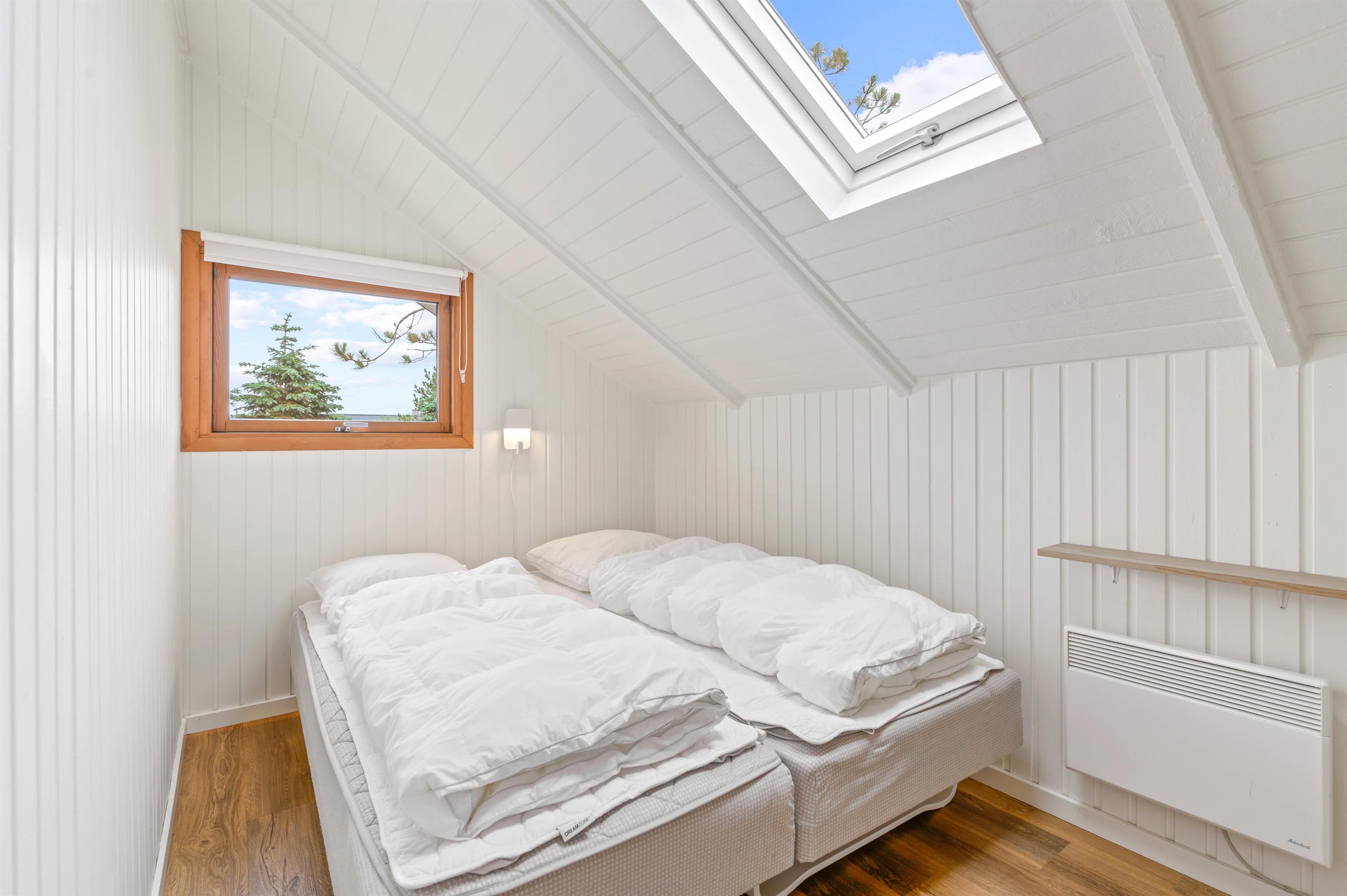 Det lyse og hyggelige sommerhus er indrettet med 2 gode soveværelser, hvor I kan få jeres skønhedssøvn i løbet af ferien. Det ene soveværelse er indrettet med en dobbeltseng, og det andet er indrettet med 2 enkeltsenge.