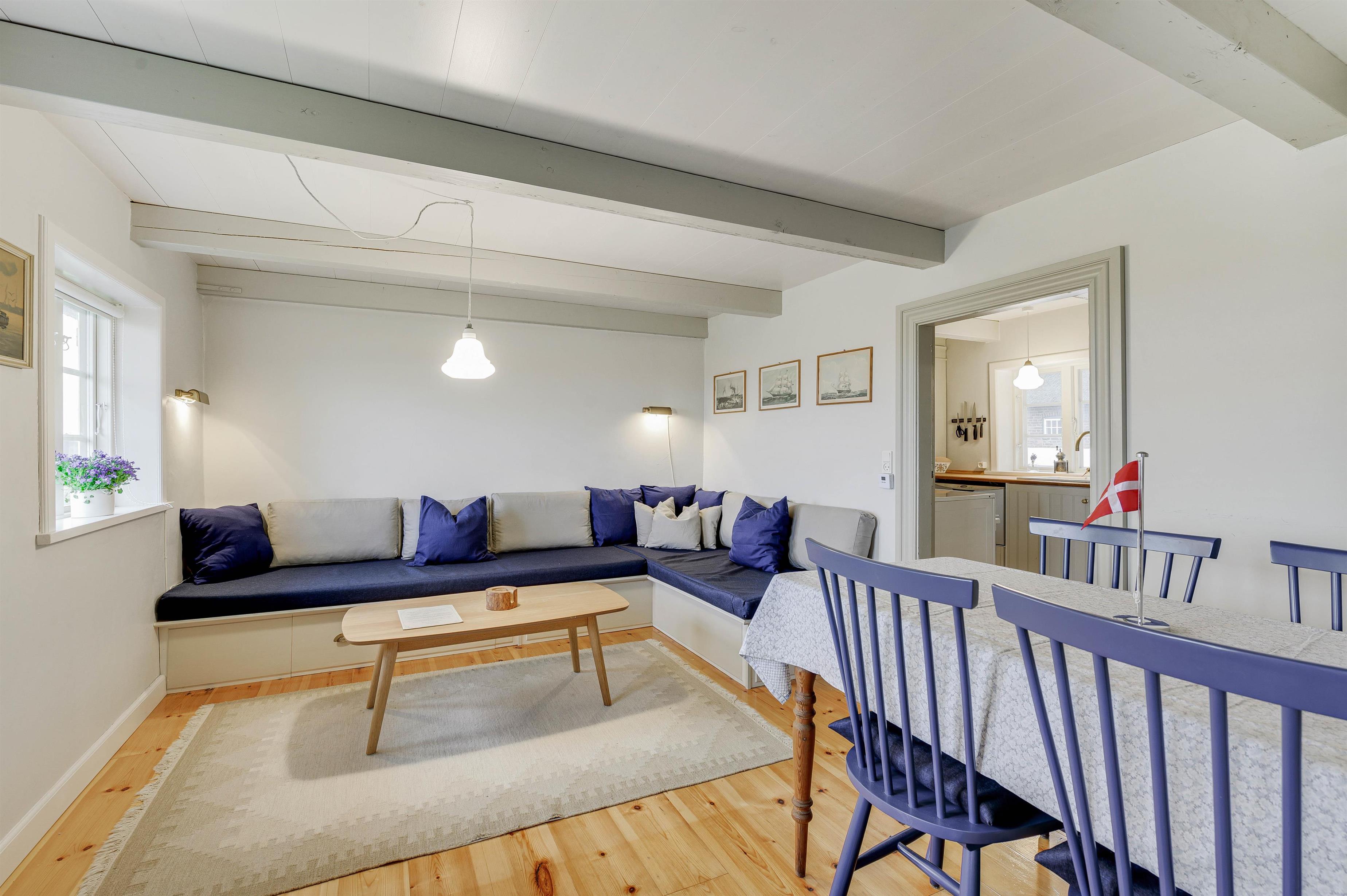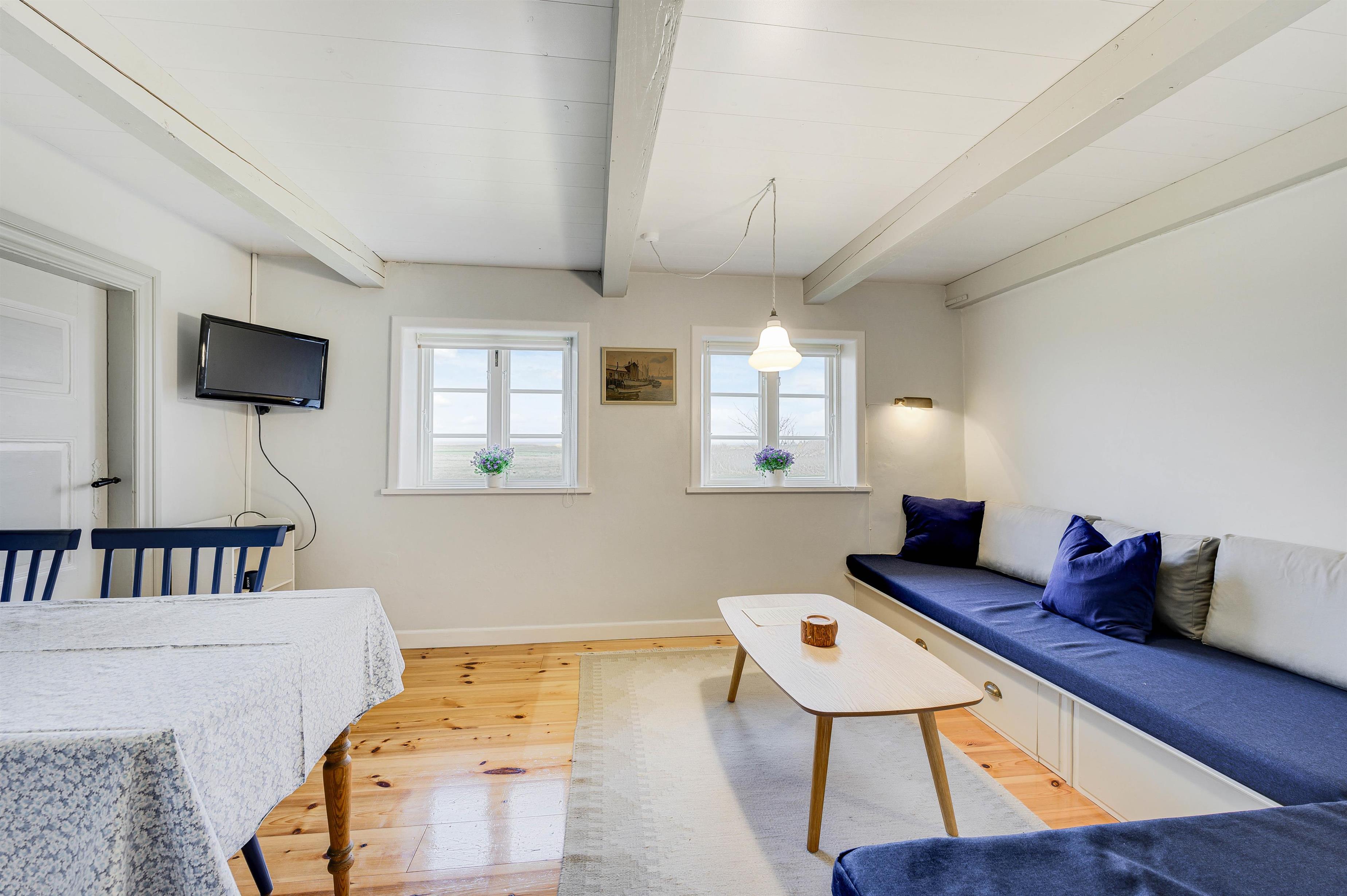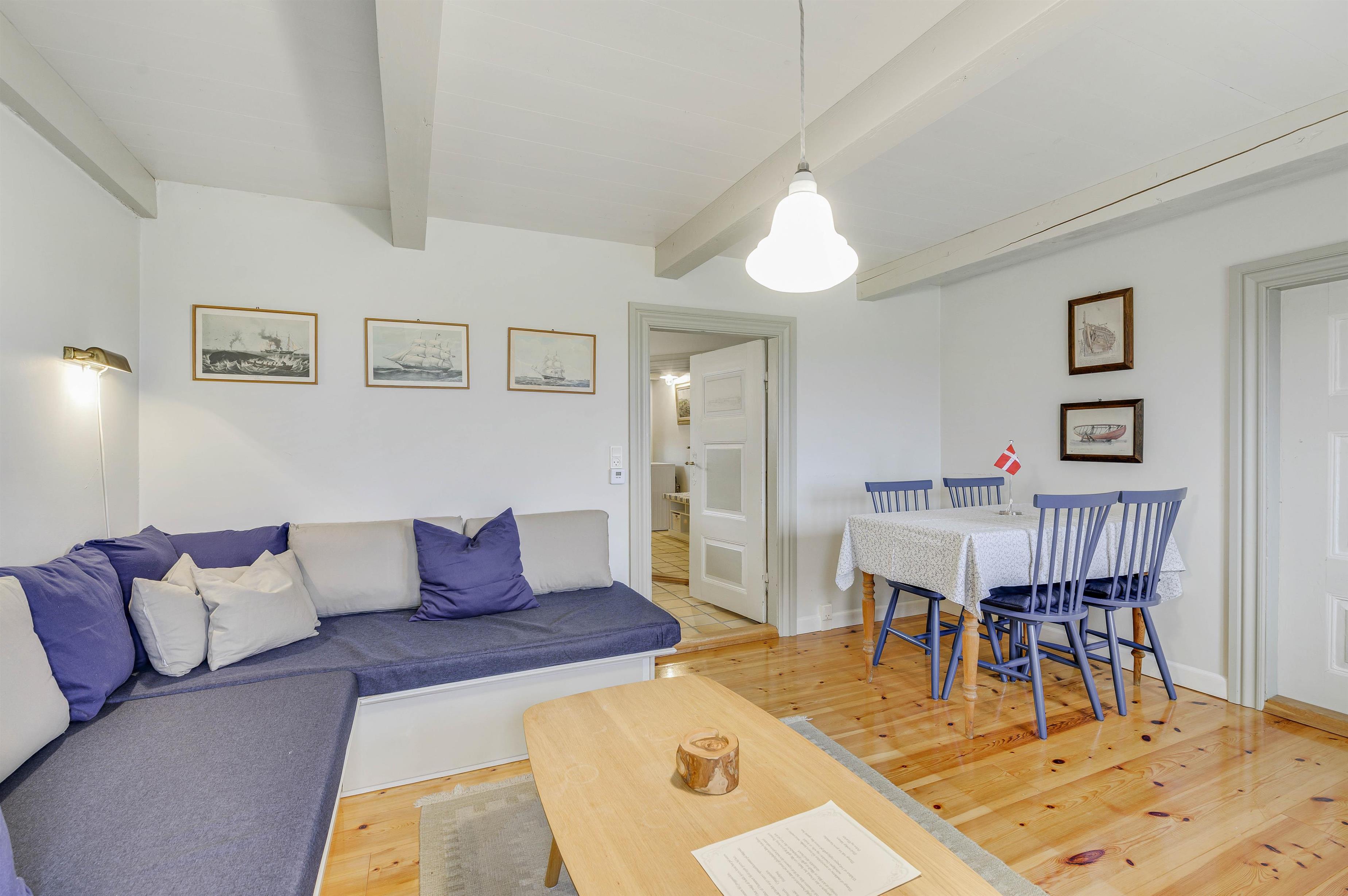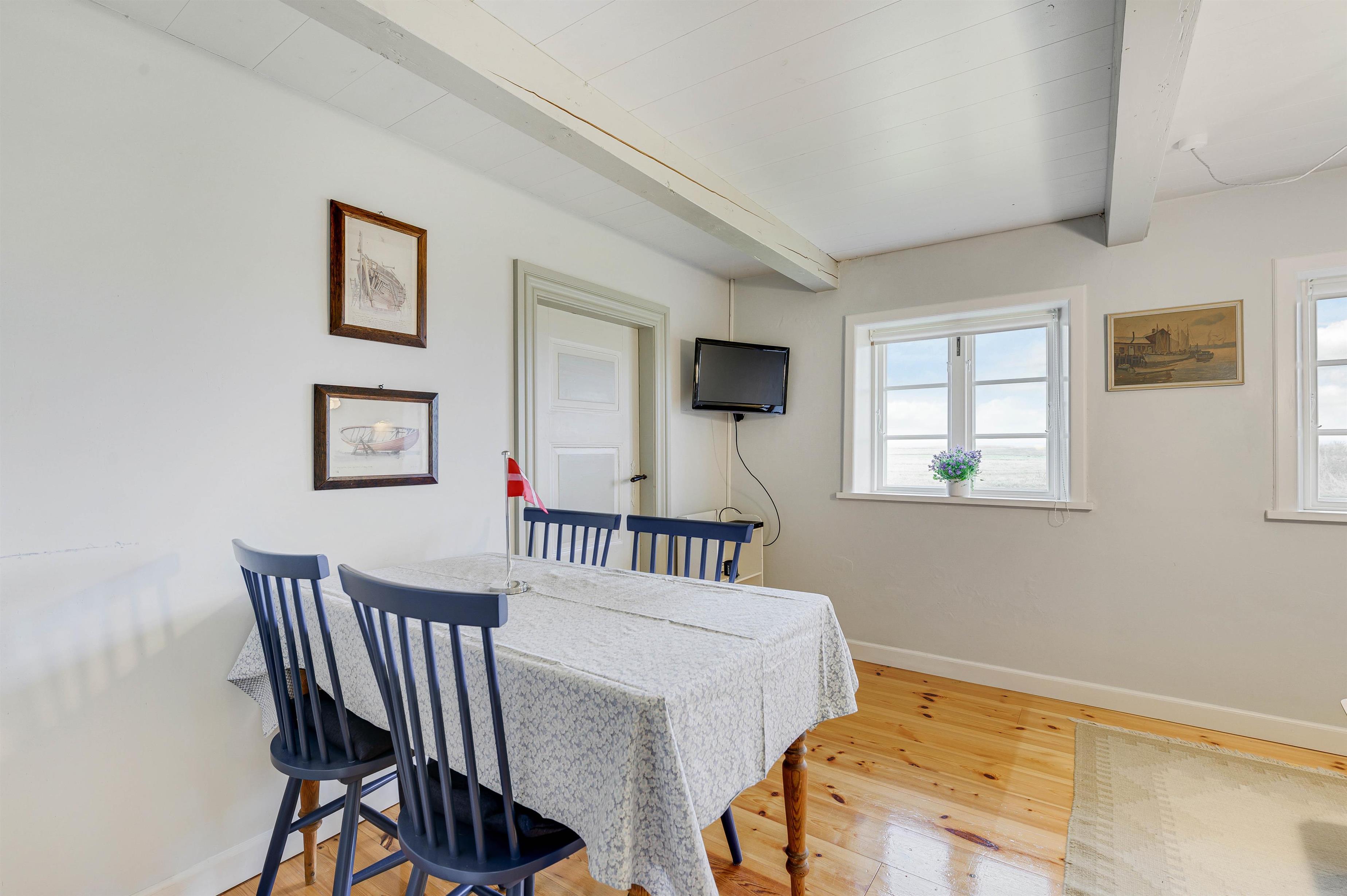 I det lille hyggelige alrum kan I være sammen om mange herlige feriestunder. Her kan I samles til gode måltider og sjove spil omkring spisebordet, eller I kan se en god film i tv’et. Her har I også mulighed for at streame jeres yndlingsfilm og - serier takket være sommerhusets Chromecast.
