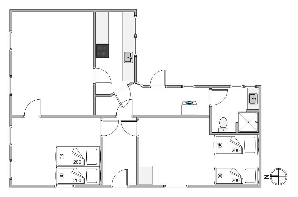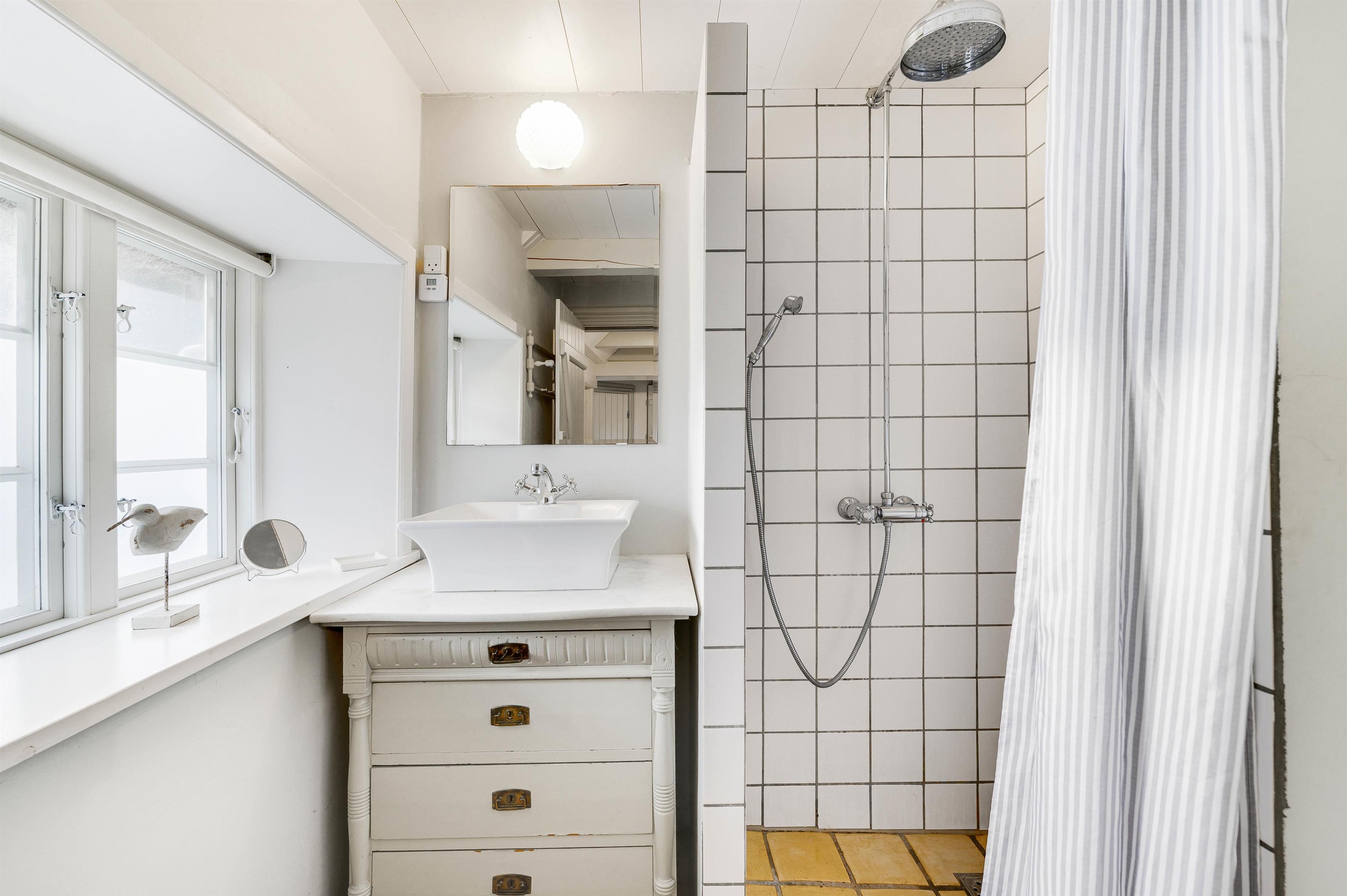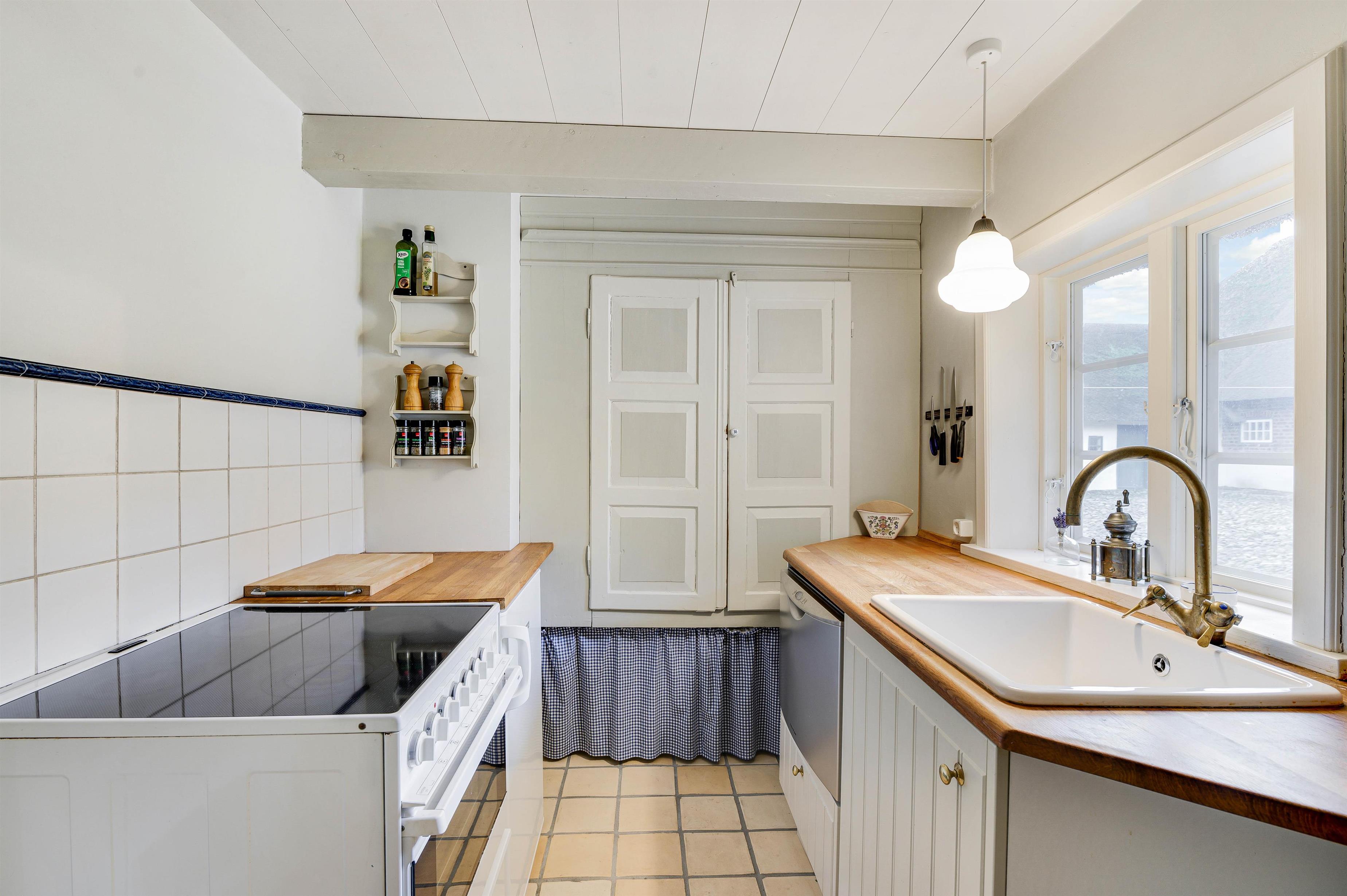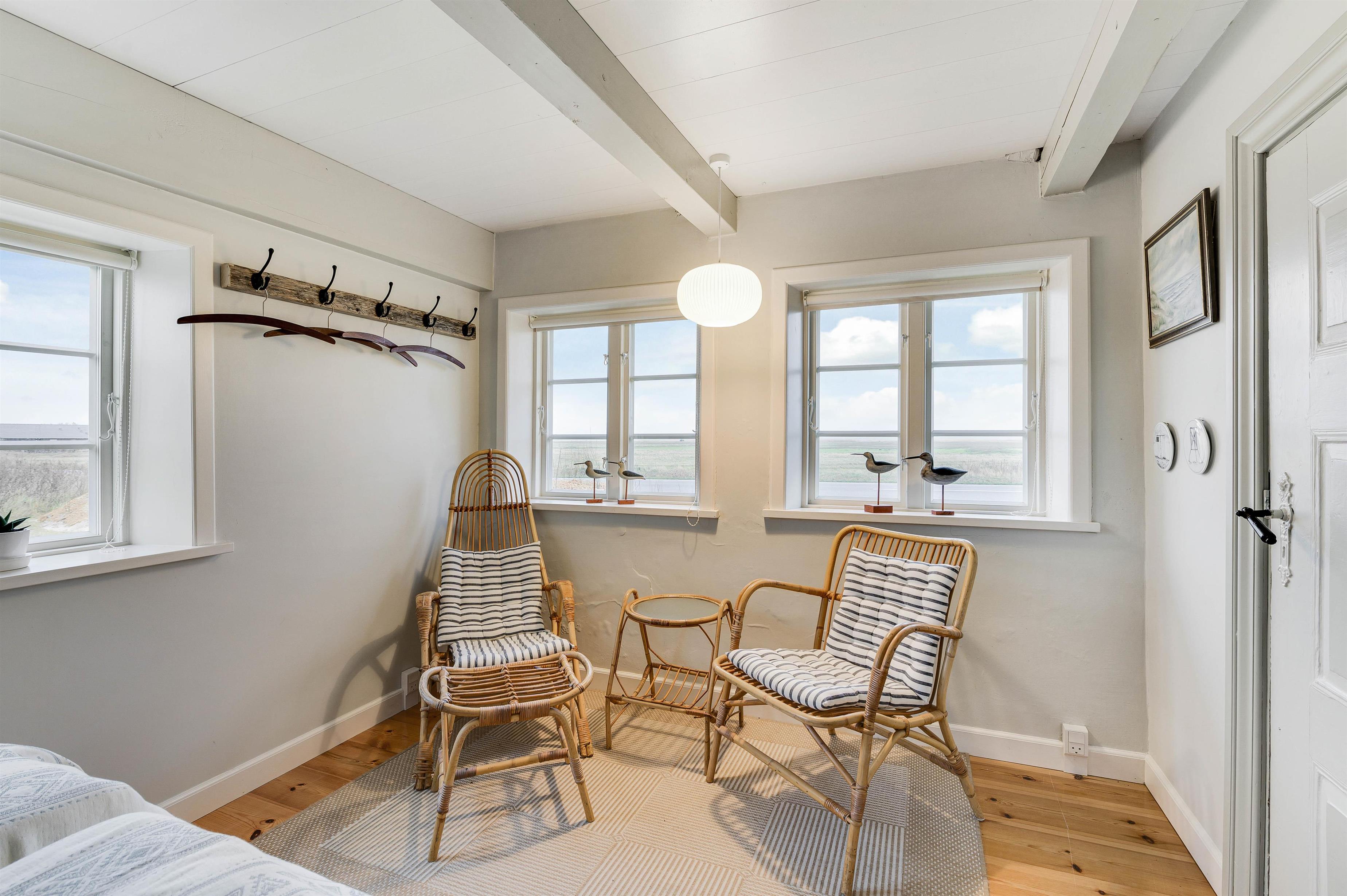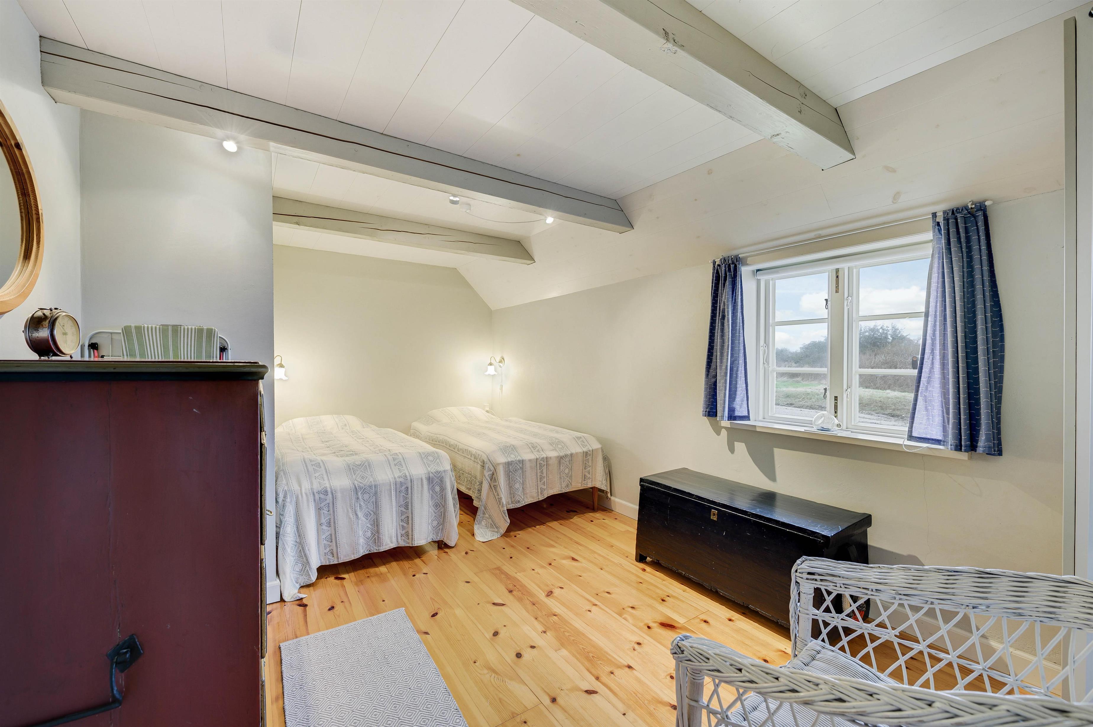 Her får I hyggelige 60 kvadratmeter beboelse i ægte klitgård-stil. De 2 soveværelser er begge er indrettet med enkeltsenge. Derudover er der 1 badeværelse, der desuden er udstyret med gulvvarme, så I ikke kommer til at fryse fødderne fra morgenstunden. Gulvvarmen vil I også kunne få glæde af i stuen og soveværelserne.
