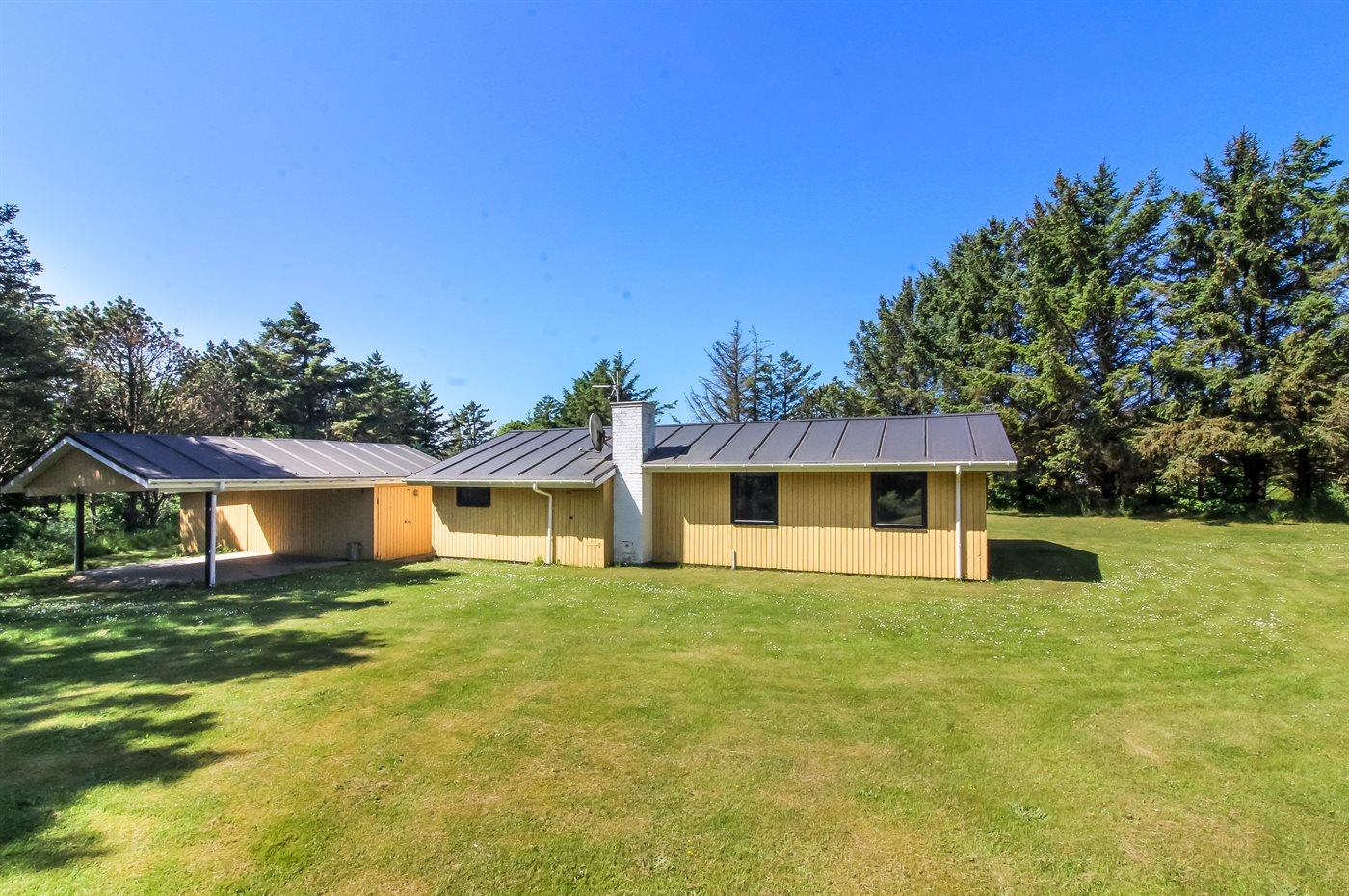 Ferieboligen er beliggende på en 3500 m² stor naturgrund. Der er 600 m til havet. Nærmeste forretning er beliggende i en afstand af 5500 m. Til ferieboligen hører 15 m² terrasseareal. Desuden er der 6 m² overdækket terrasse. Der er redskabsrum. Gynge. Der er carport til rådighed.