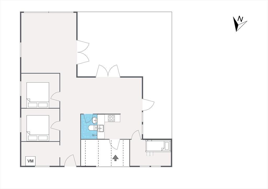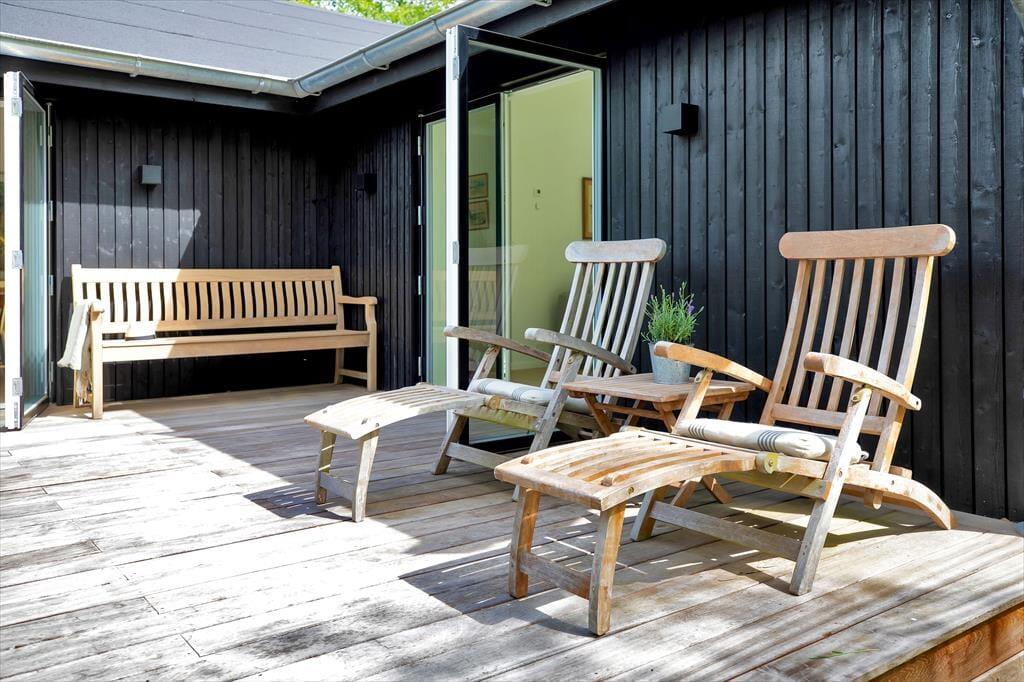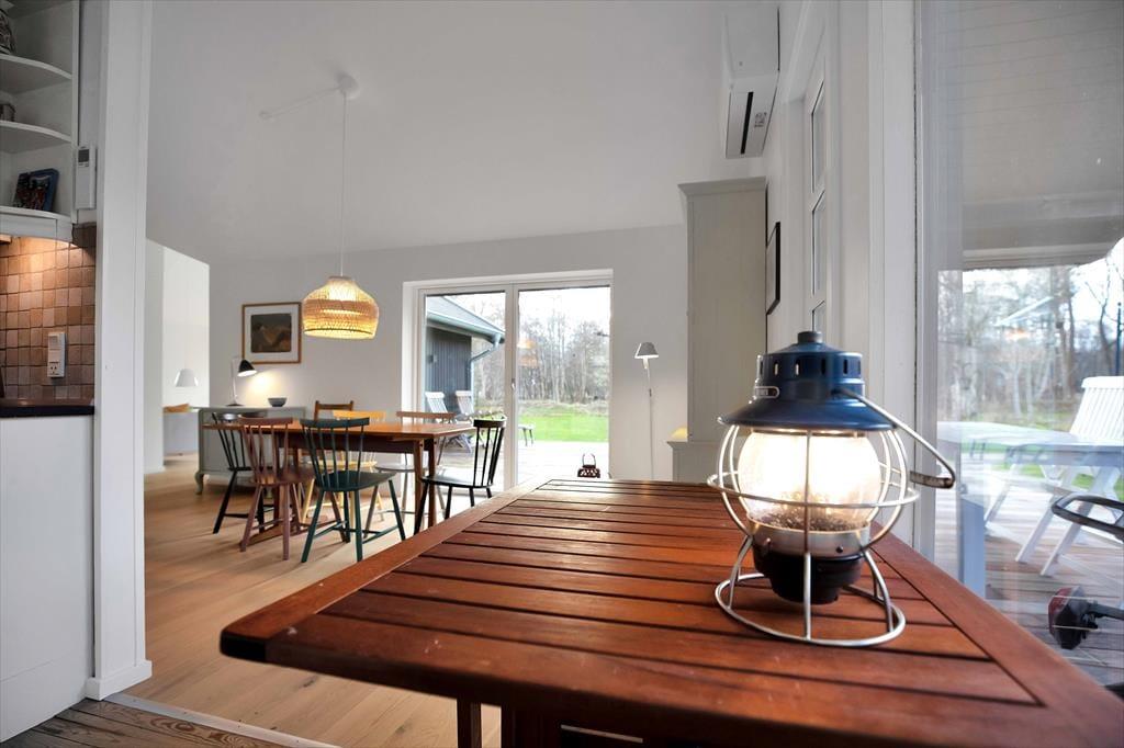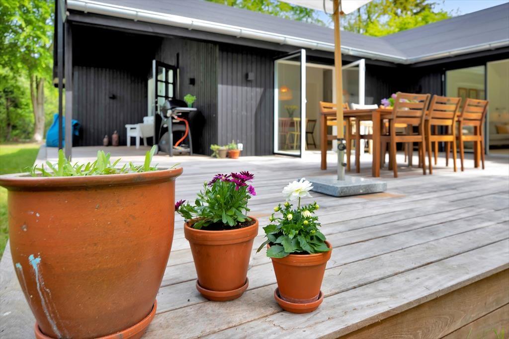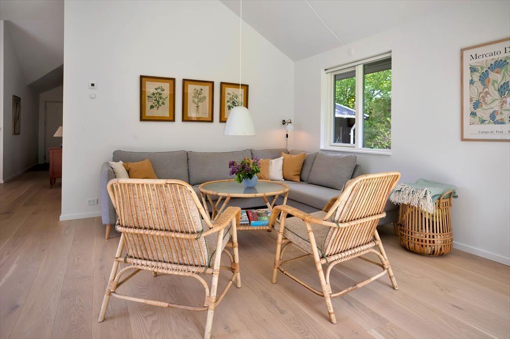 Huset er indrettet med en stor, åben stue med store vinduer der giver et fantastisk lysindfald og udgang til den skønne åbne terrasse, hvorfra I kan nyde naturen. Dertil er der et dejligt åbent køkken. Huset har tre soveværelse, de to af dem har dobbeltsenge og det tredje har en køjeseng. Derudover er der badeværelse med brus samt bryggers med vaskemaskine. På husets fantastiske terrasse opdelt i en åben og en overdækket afdeling, kan I nyde solen fra morgen til aften. I haven er der rig mulighed for udeliv og den store trampolin leverer underholdning til børnene.