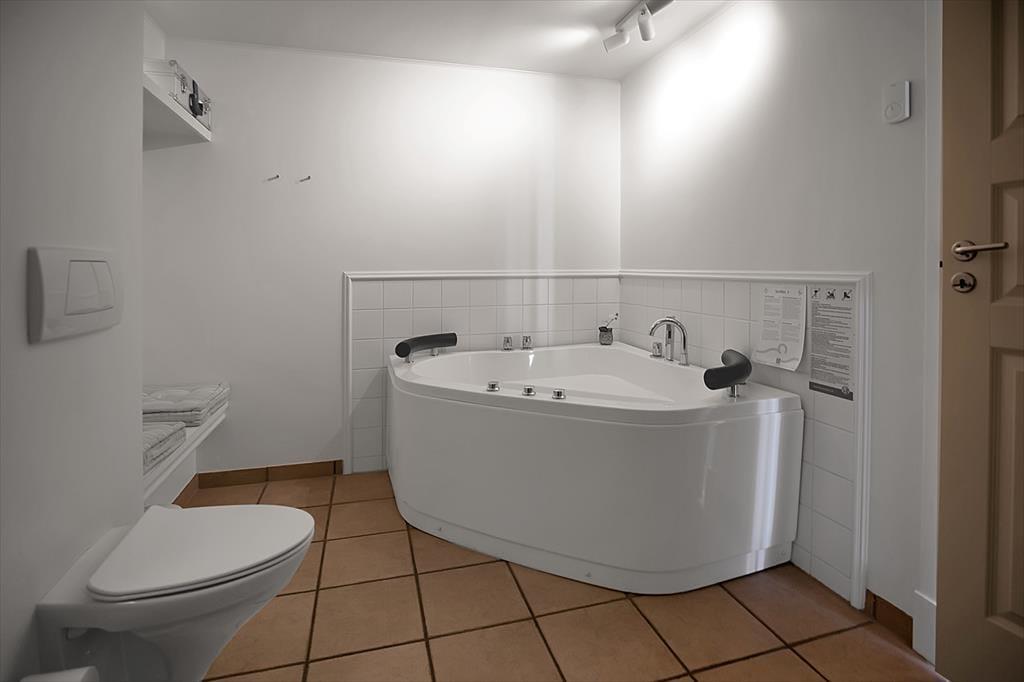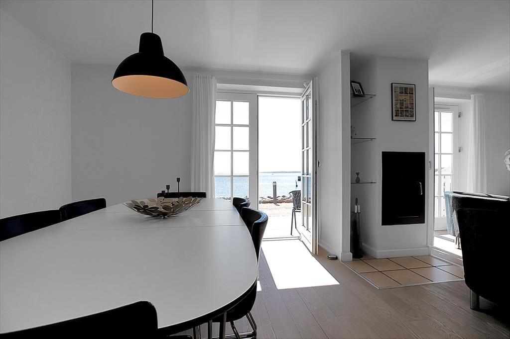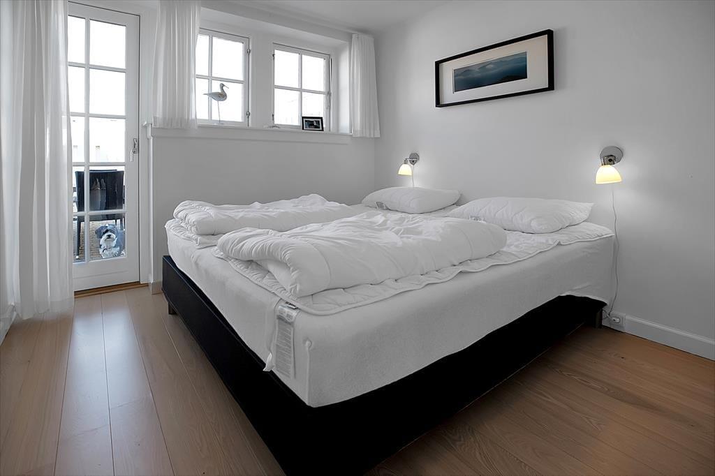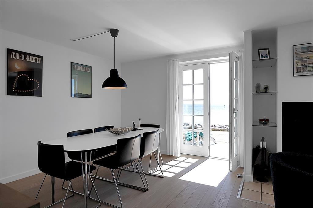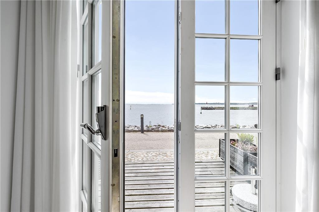 I denne lyse, ferielejlighed i stueplan lige ud til havnefronten og med kig til Nykøbing Bugt vil du befinde dig rigtig godt. Du kan se ud på Isefjorden fra de franske døre mod terrassen fra både sofaarrangementet og fra det store spisebord. Ja, du kan endda stå og koge morgenægget eller stege aftenens bøf og se ud på vandet og slå dobbeltdørene op. I den funktionelle bolig i lyse farver og med højt til loftet kan du også komme til at svede i saunaen. Spabadet ligger lige uden for saunadøren, så du kan blive masseret blidt og få ny energi. Når dagen går på hæld, finder du ro og hvile i de gode senge i de to soveværelser, der begge har udgang til terrassen på den anden side af huset.