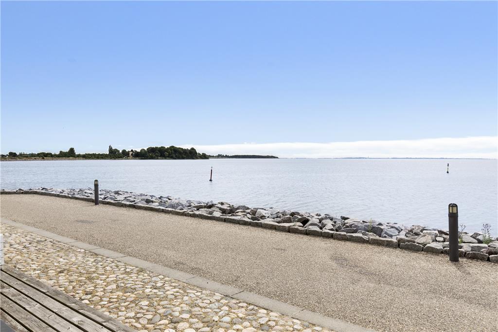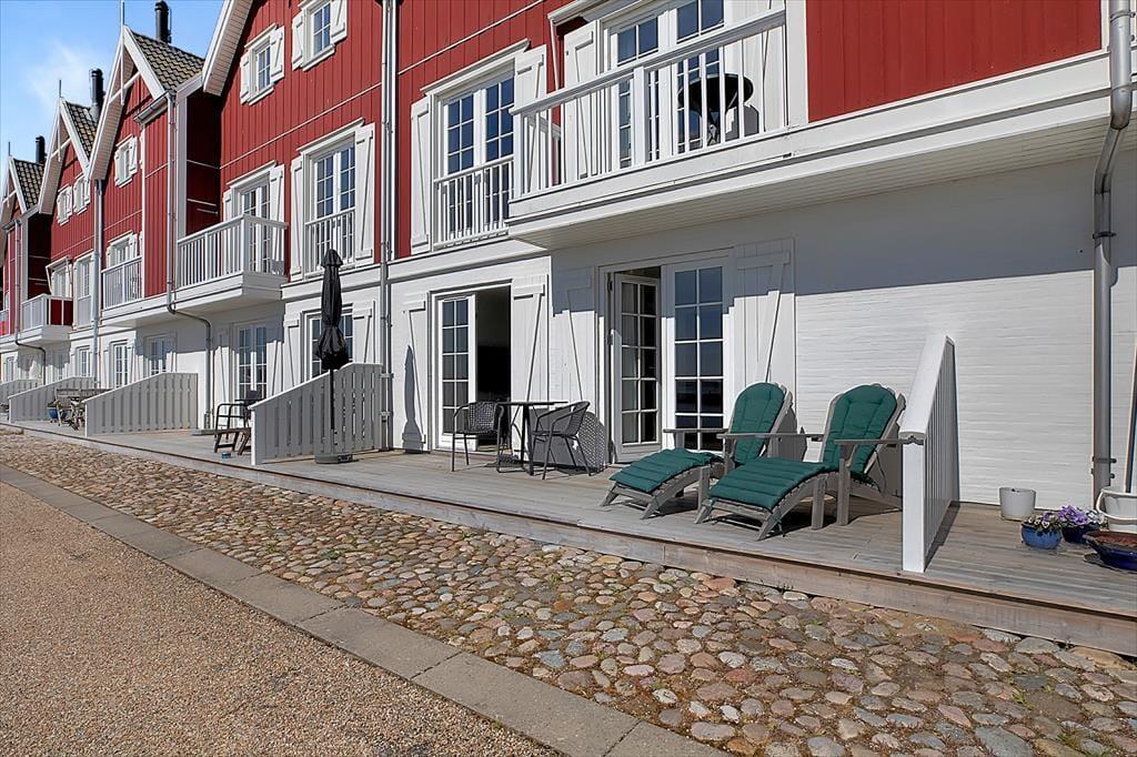 Med terrasser både foran og bag huset kan du altid finde et sted at slappe af og nyde det, når solen er fremme. Med beliggenhed på havnen er der ikke langt til byen med gågade, teater, musik- og udstillingssteder, cafeer og mange shopping muligheder. Vil du hellere gå en tur i den lille byskov, Grønnehave Skov, lige over for havnen, er turen hertil heller ikke lang, og du finder flere afmærkede stier, bl.a. Hjertestien, grillpladser, borde og bænke, og så er skoven tilmed en hundeskov, hvor du kan lufte hunden uden at have den i snor.