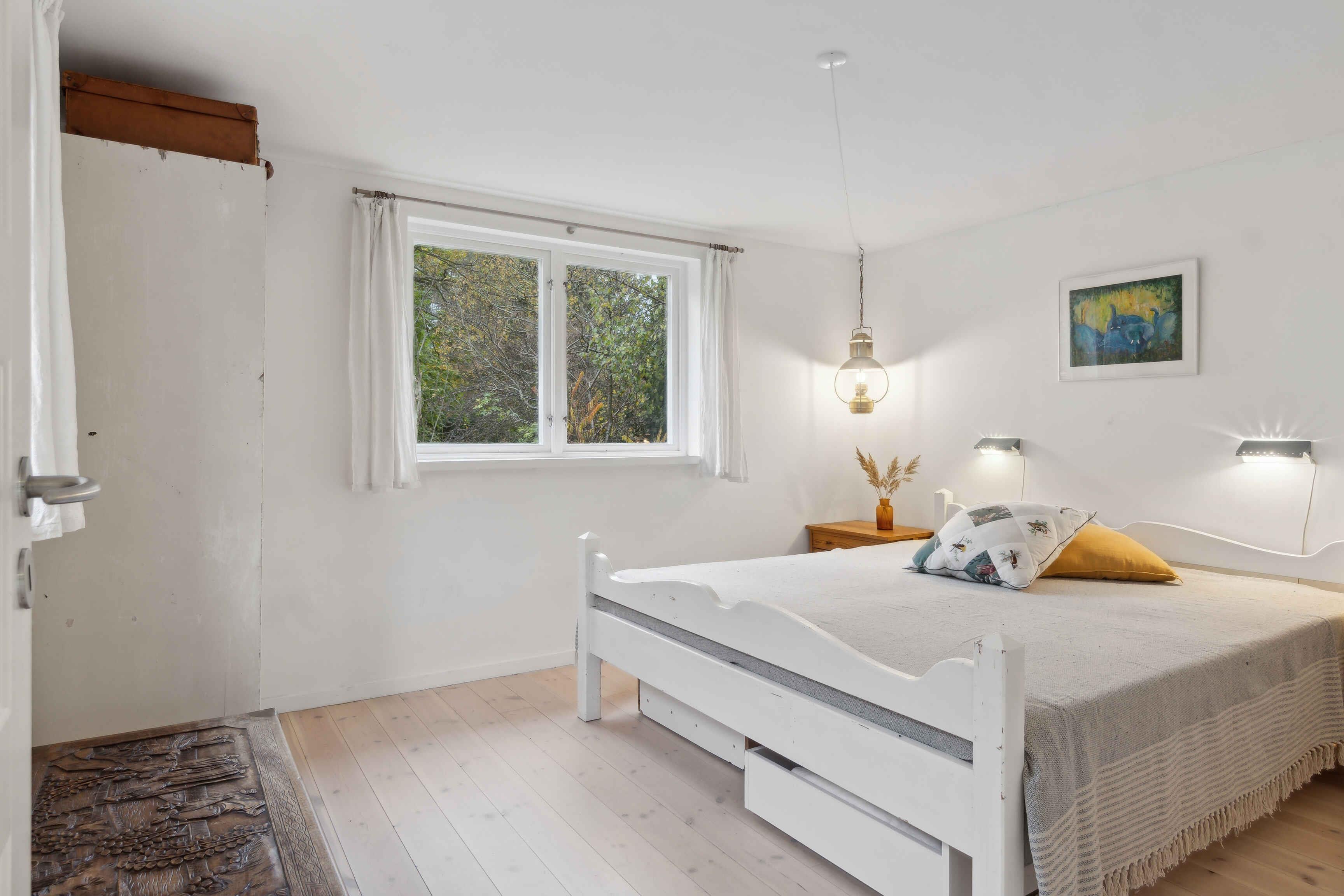 Dette arkitekttegnede sommerhus byder på en fantastisk beliggenhed tæt ved vandet og med egen strand, ideelt for dem, der ønsker ro og afslapning i naturskønne omgivelser. Med fem soveværelser og ti sovepladser er huset oplagt til større grupper eller familier. Tre soveværelser findes i selve huset, og de to øvrige er placeret i et hyggeligt anneks med eget badeværelse. Det store vinduesparti og ovenlysvinduerne skaber en lys og luftig atmosfære i hele huset. Her kan I nyde udsigten til haven og kigget til fjorden fra stue, spisestue og køkken. Den rummelige have byder på flere terrasser og en hyggelig bålplads. Her kan I nyde aftenerne udendørs og lade jer omfavne af naturen og den friske luft. Med kun 100 meter til vandet er stranden lige ved hånden. Her er rig mulighed for både badning og fiskeri, så strandliv kan blive en del af jeres ferieoplevelse. Huset er udstyret med Chromecast og indbyggede højttalere, perfekt til en hyggelig aften efter en dag i det fri. Det er nemt at koble af og nyde musikken eller en god film. For de eventyrlystne er der surfbrætter til fri afbenyttelse. I kan også finde tang, muslinger, svampe og urter i området, ideelt til dem, der ønsker at komme tættere på naturen. Området byder på mange oplevelser. Besøg Malergården eller tag en gåtur langs den smukke kyst. I finder her en fredfyldt atmosfære og mange naturoplevelser. Dette sommerhus har sjæl og charme. Her får I den perfekte ramme for en ferie med afslapning, naturoplevelser og nærvær i smukke omgivelser. Obs, udlejes ikke til erhversmæssigt brug.