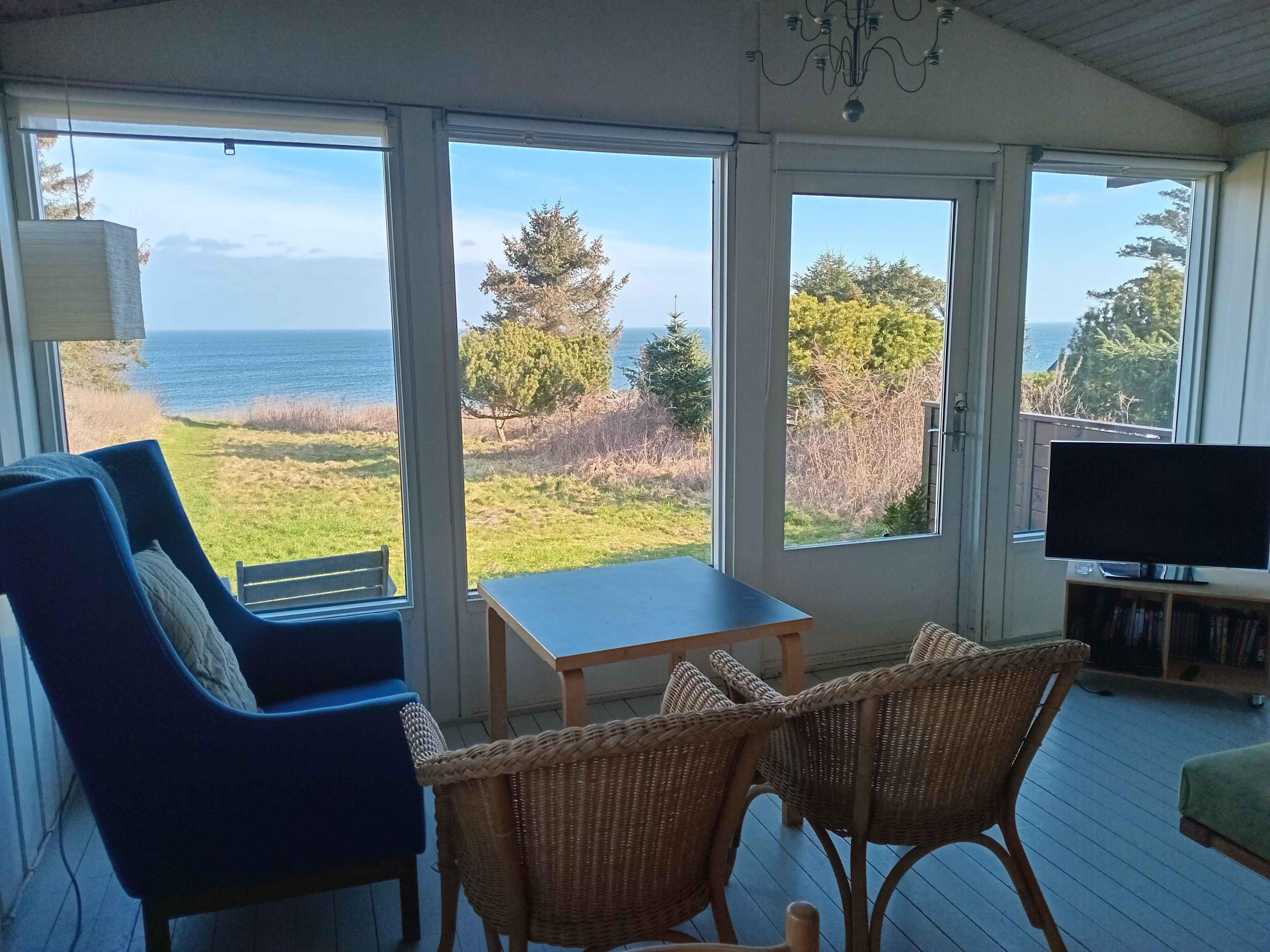 Hyggeligt lille sommerhus med havudsigt i første række til havet, strand og fredede kystarealer. Godt til dem der der lægger vægt på funktionalitet og udsigt frem for luksus. 2 soveværelser, køkken og stue samt en god stor altan.Et hus med ro og sjæl