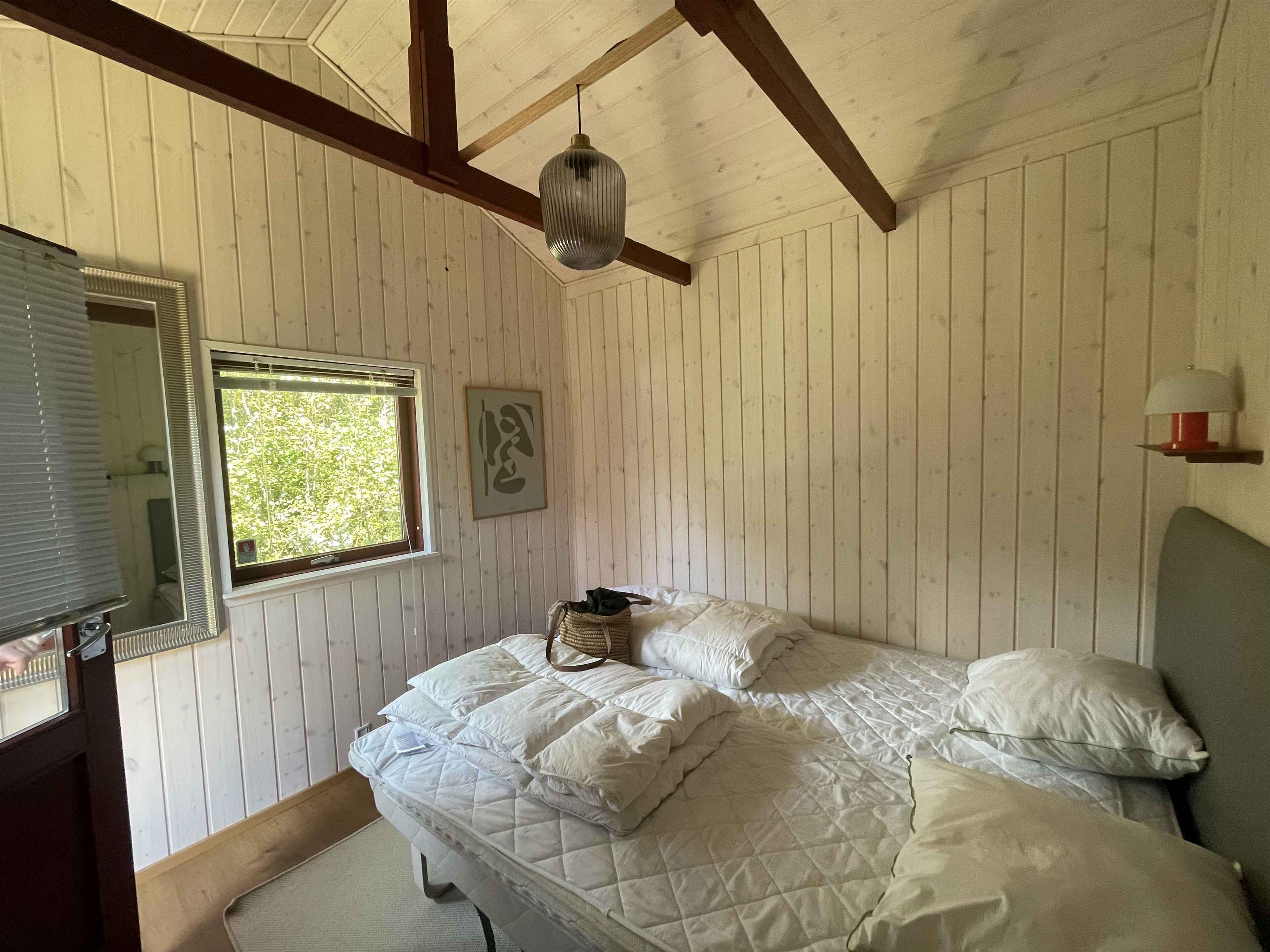 I herlige omgivelser tæt på vandet og hyggeligt gårdsalg ligget dette uforstyrrede og traditionelle sommerhus med en dejlig have. Det charmerende sommerhus har loft til kip, som skaber en dejlig rummelig atmosfære og masser af god energi. Der er plads til 6 personer fordelt på et soveværelse med en dobbeltseng, sovesova i stuen og 2 personer i anneks. De store gulv-til-loft vinduer lukker dagslyset ind i stuen og skaber en behagelig stemning. Der er åben forbindelse mellem stuen og køkkenet, så madlavningen kan foregå, mens der hygges i stuen. Fra stuen er der udsigt til terrassen og haven, hvor man kan nyde solens varme stråler hele dagen. Grunden er dejlig stor og byder på masser af grøn have og let adgang til stranden, der kun er 800 meter væk. I området er der gode, lokale markeder, flot natur og på stranden er der også en badebro. På en kort køretur (10 min) kan I tage en tur i Sommerland Sjælland, hvor der venter sjov og spas for hele familien. I kan også tage til nogle af de nærliggende byer, og nyde den hyggelige feriestemning, besøg f.eks. Rørvig eller Holbæk. Bemærk: Huset er af ældre dato, og der er ses spor af slid på terrassen.