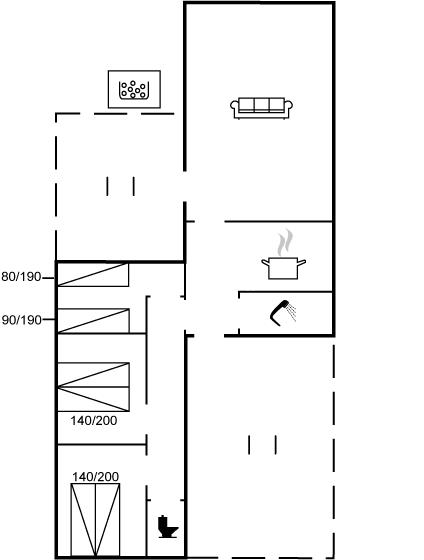 Der er i alt 3 soveværelser. Sovepladserne fordeler sig på: 4 sovepladser i dobbeltsenge. 2 sovepladser i enkeltsenge.