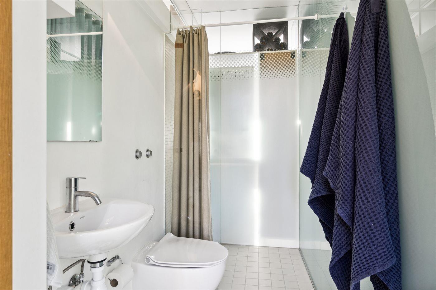 Der er 1 badeværelse med bruseniche og 1 toilet.. Der er gulvvarme på 1 badeværelse.