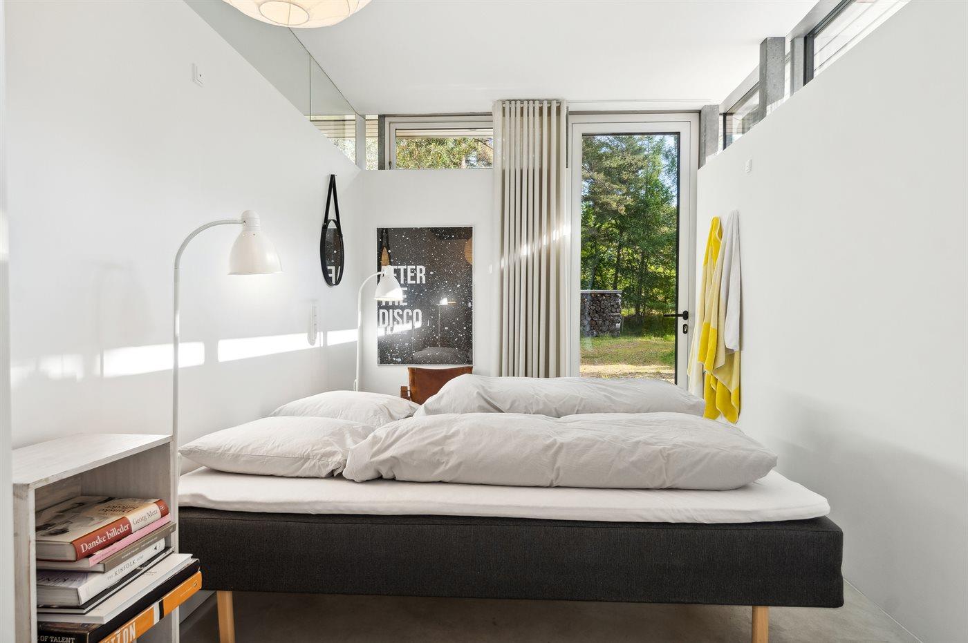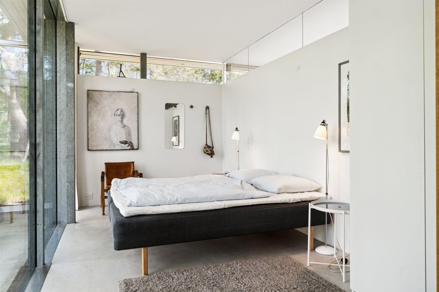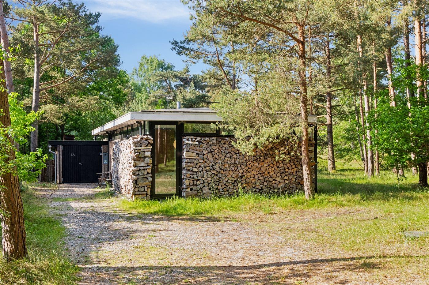 Dette er lidt af en arkitektonisk perle. Huset ligger omkranset af skov og med kun få hundrede meter til dejlig badestrand. Selve huset er indrettet meget smagfuldt med store vinduer fra gulv til loft, betongulv med gulvvarme og et meget stort køkken/alrum. Når man sidder ved spisebordet og nyder sin morgenkaffe, så kan man følge med i det rige dyreliv, hvor dyrene kommer helt tæt på huset.