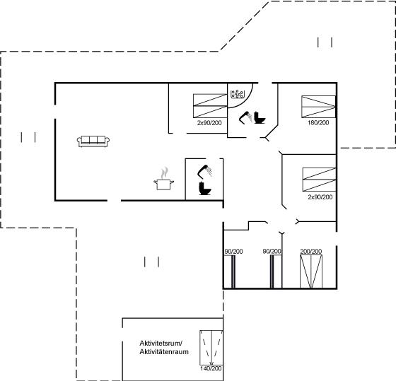 Der er i alt 5 soveværelser. Sovepladserne fordeler sig på: 8 sovepladser i dobbeltsenge. 4 sovepladser i køjesenge. Derudover er der 1 stk. barneseng.