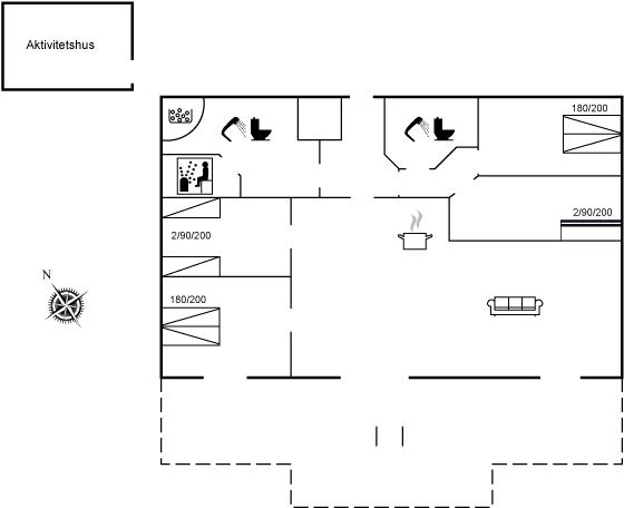 I det fritliggende anneks er der aktivitetsrum, hvor der er rig mulighed for at udfolde sig og hygge sig med bordtennis, bordfodbold, airhockey og dart. OBS: I vinterhalvåret opvarmes aktivitetsrummet af el-radiatorer.