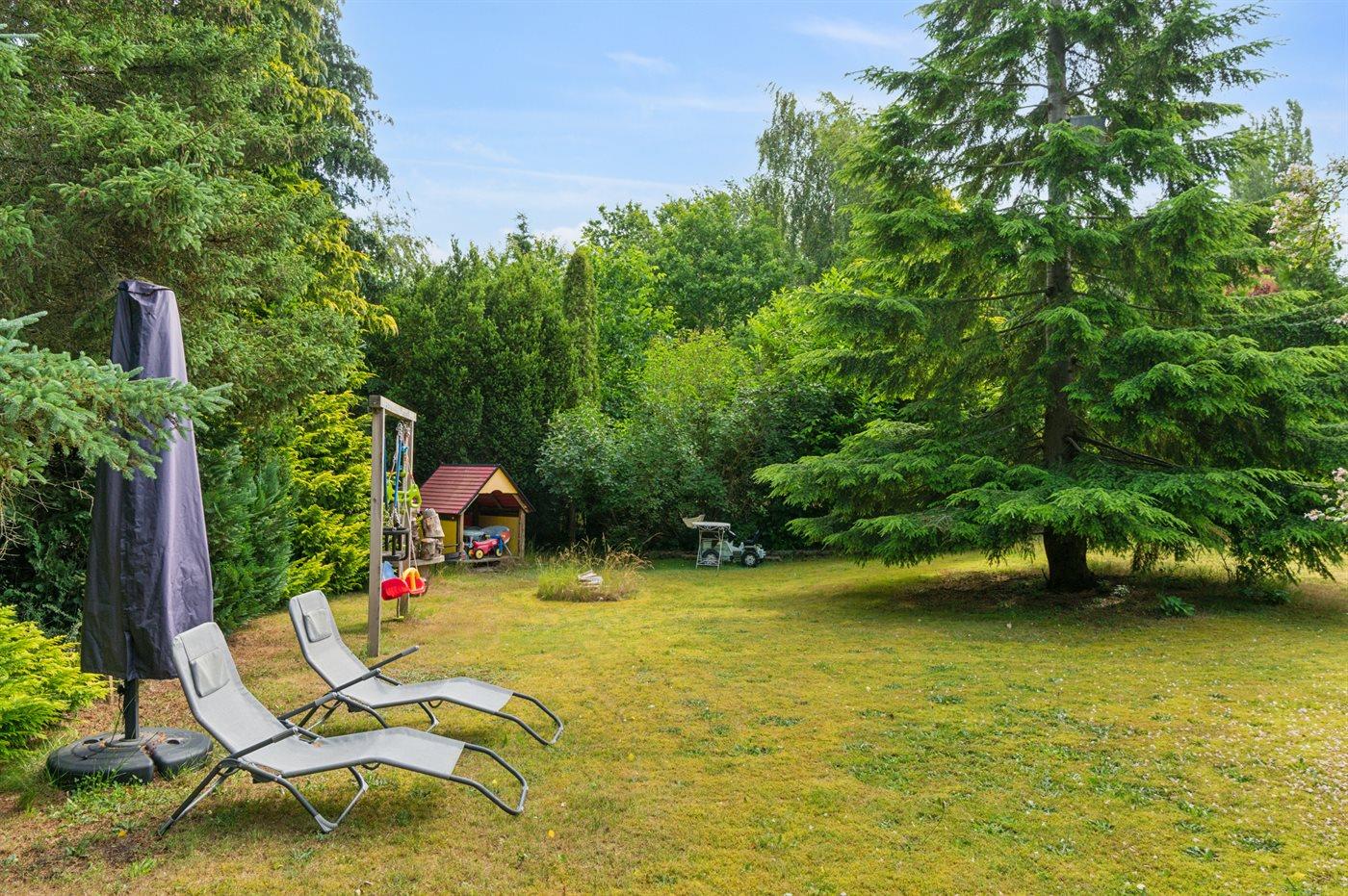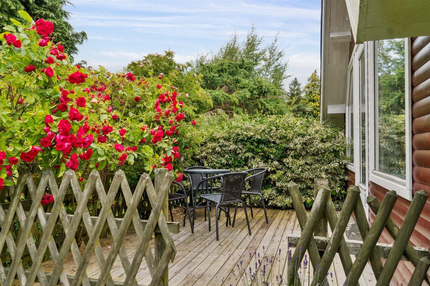 Charmerende sommerhus nær stranden med hyggelige terrasser og stor have i Nykøbing Sjælland.