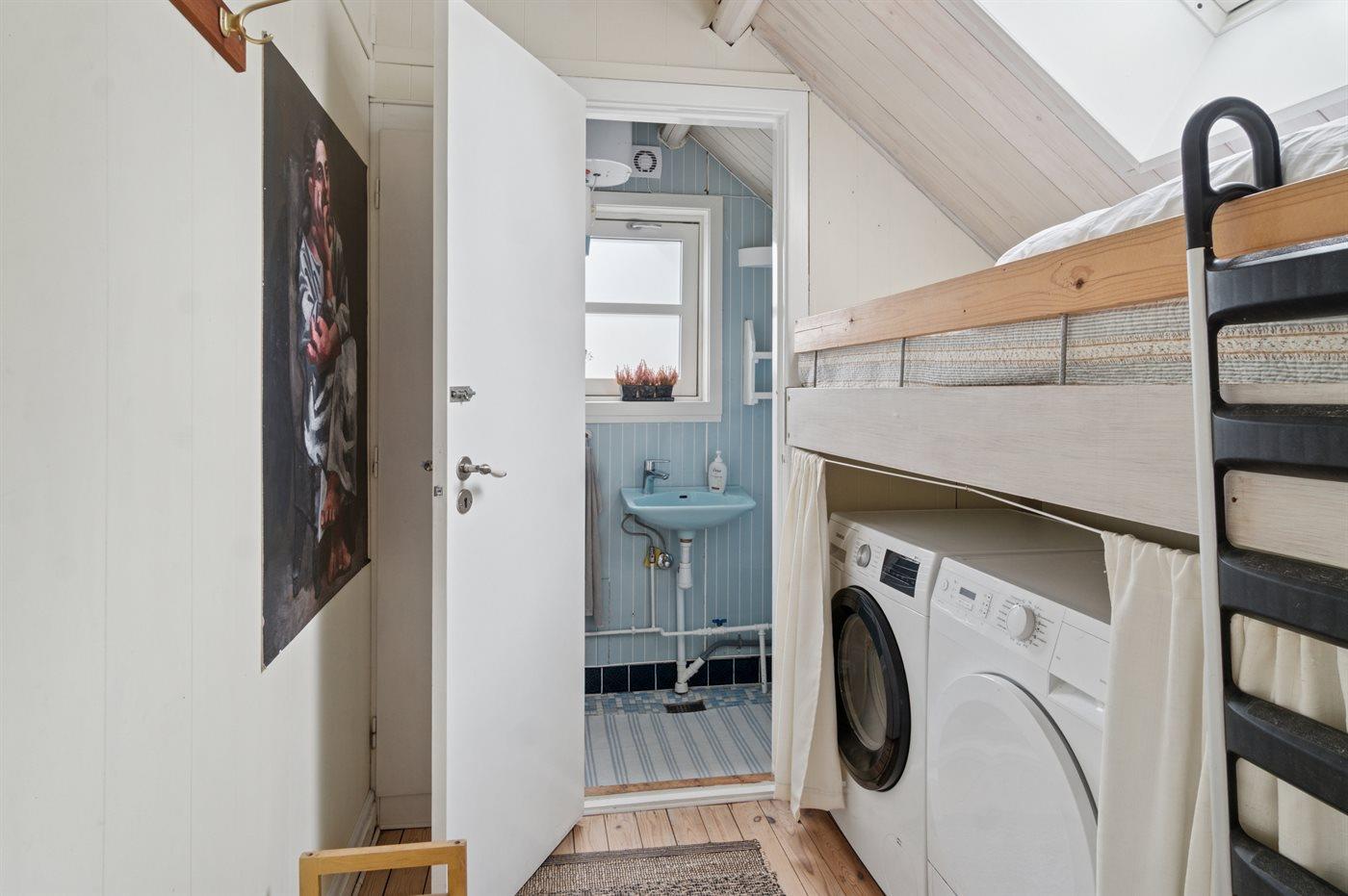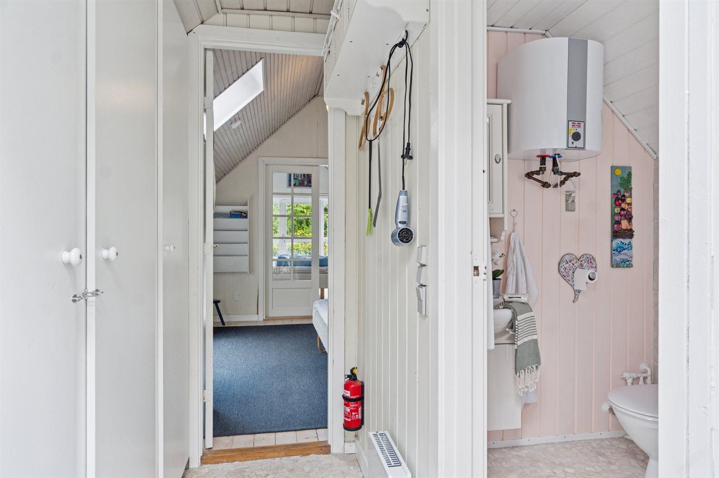 Der er 1 badeværelse med bruseniche og 2 toiletter, heraf 1 gæstetoilet. Der er gulvvarme på 1 badeværelse.