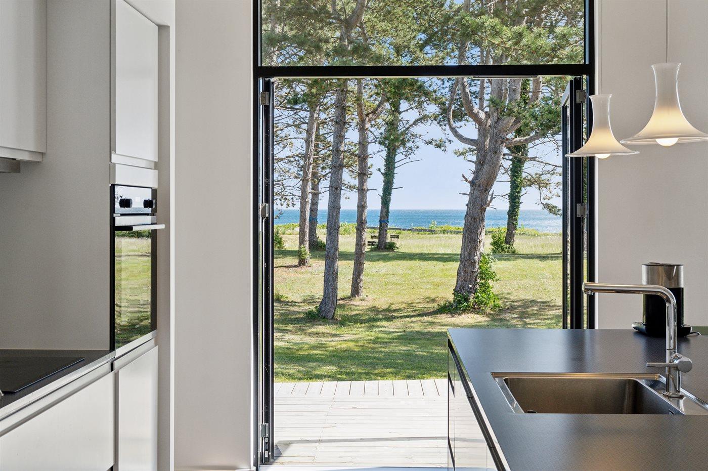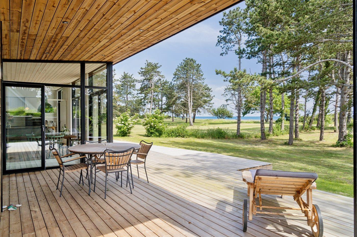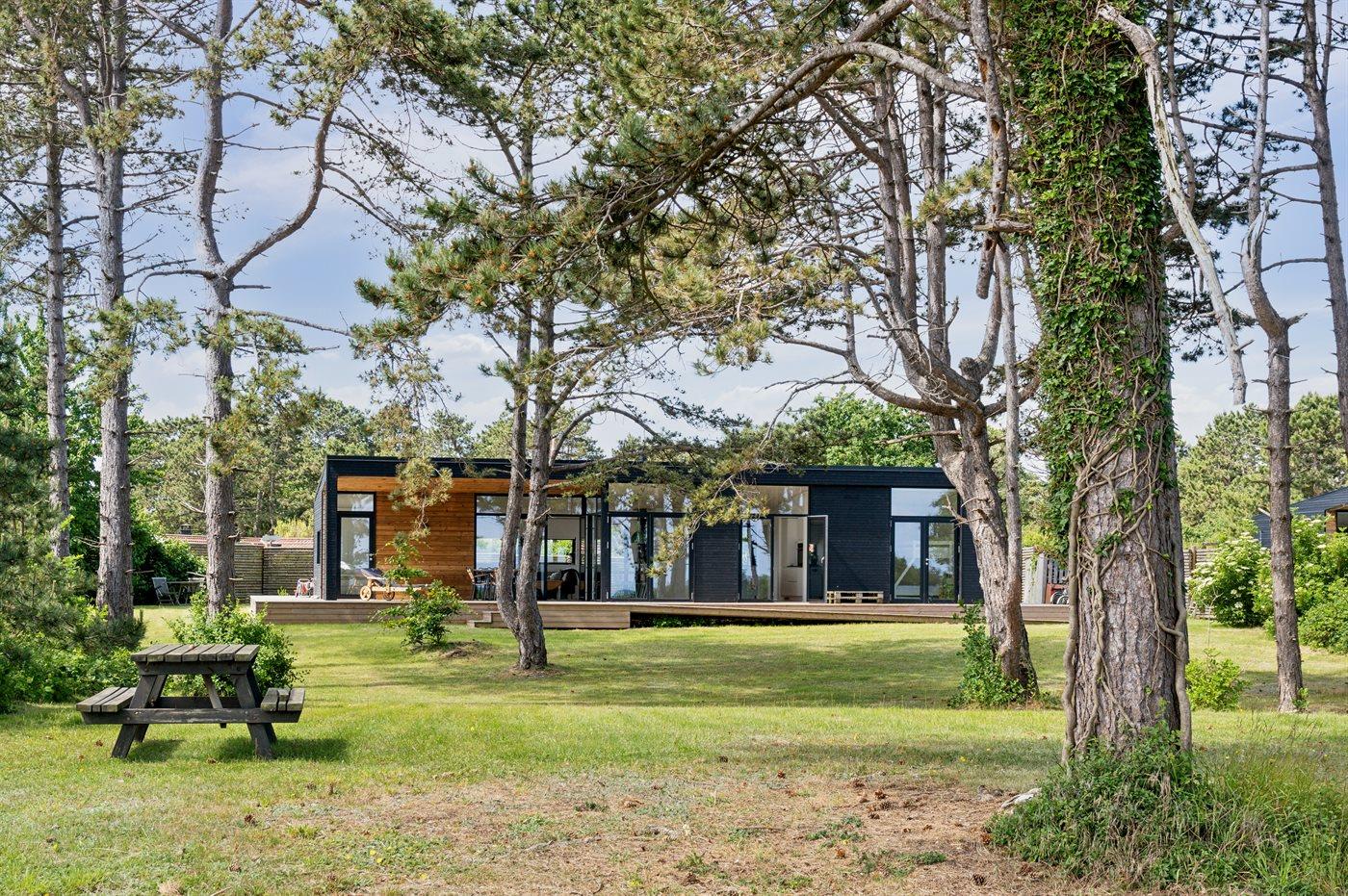 Moderne sommerhus fra 2022 med panoramaudsigt og direkte adgang til havet i Klint, Sjælland.