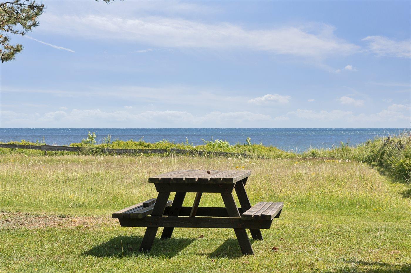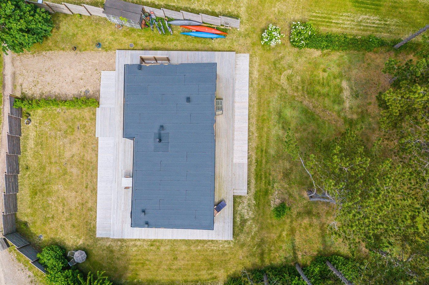 Ferieboligen er beliggende på en 2527 m² stor havegrund. Der er 10 m til havet. Nærmeste forretning er beliggende i en afstand af 2150 m. Der er en golfbane i en afstand af 4750 m. Til ferieboligen hører 112 m² terrasseareal. Desuden er der 24 m² overdækket terrasse. Udendørs bruser. Grill til rådighed. Parkering ved ferieboligen.