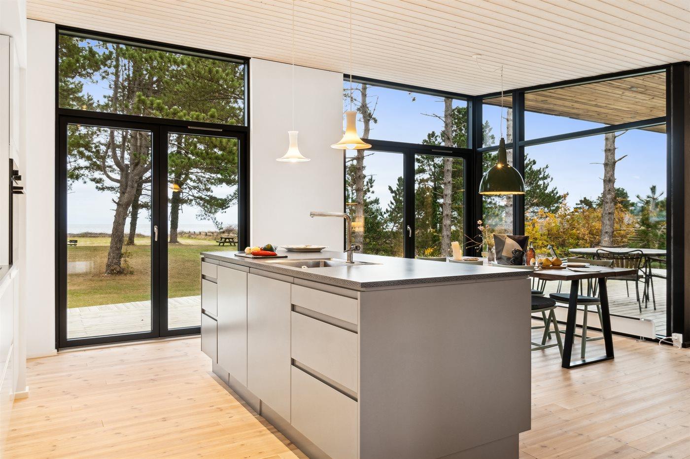 Køkkenet er udstyret med 1 køleskab. Der er 4 induktionskogeplader, varmluftovn samt opvaskemaskine.