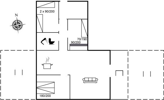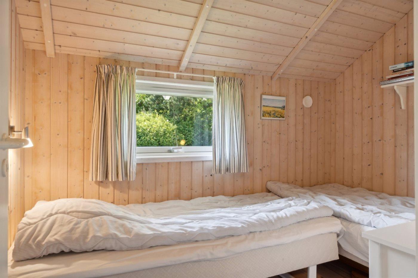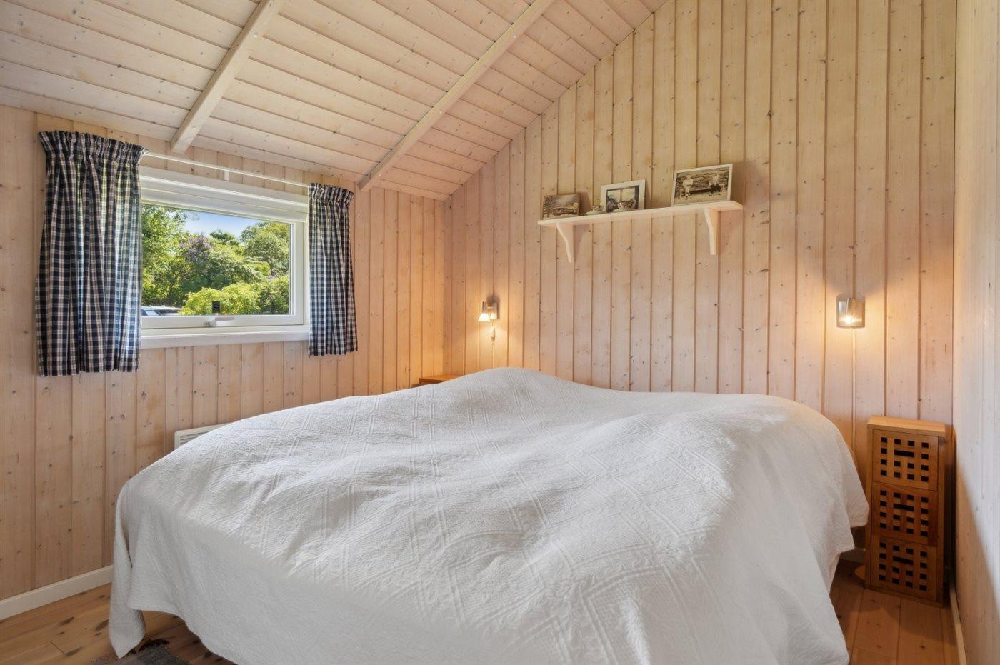 Huset er indrettet med 3 soveværelser, hvor der i det største soveværelse er en dobbeltseng og i det andet er 2 enkeltsenge. I det sidste soveværelse er en køjeseng (sengemål 70x190 cm.) og en enkeltseng. Der er badeværelse med bruseniche og gulvvarme. I det praktiske bryggers er der vaskemaskine og fryser.