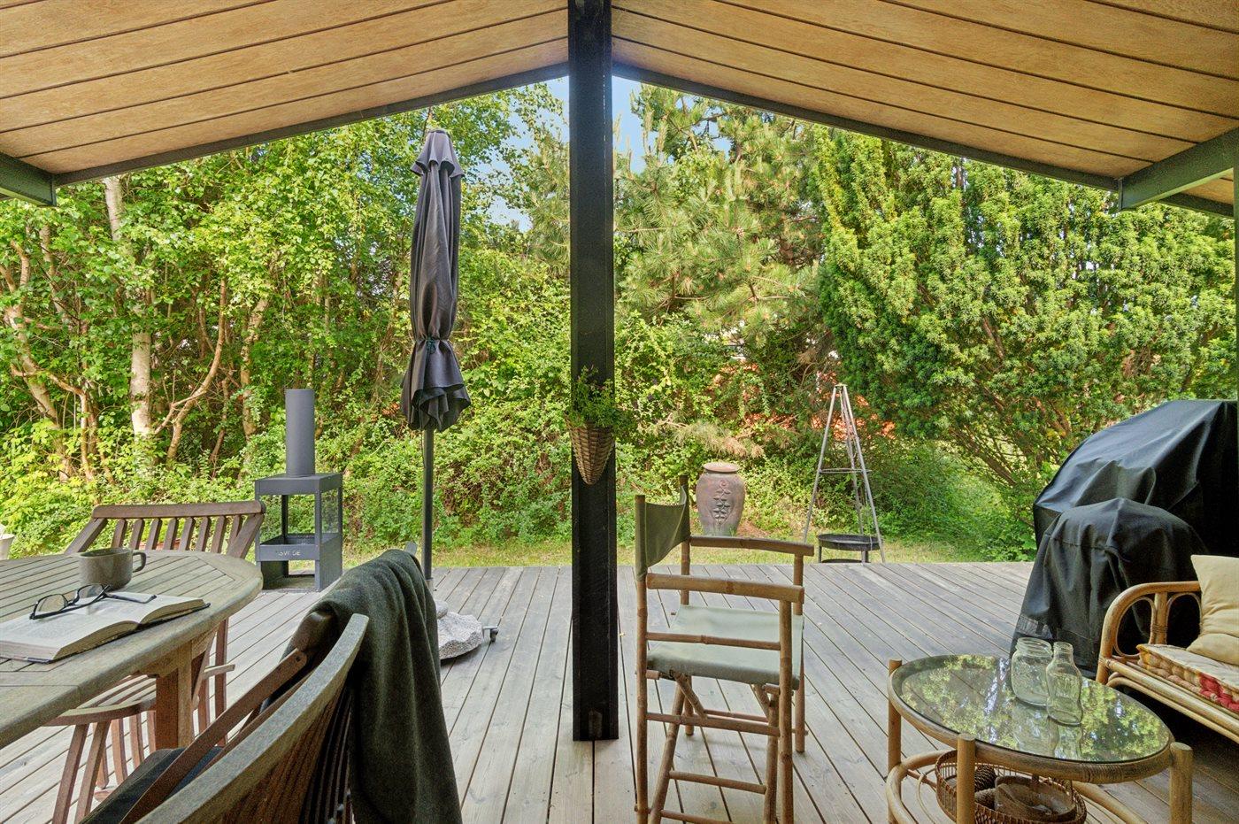 Huset indeholder et dejligt køkkenalrum i forbindelse med stuen. Herfra er der udgang til et stort terrasseareal, hvor en større del er overdækket. Her er rig mulighed for at nyde solen og finde skygge og læ og nyde de lange sommeraftener. Fra køkkenet er der desuden en terrassedør ud til de to annekser. Det største af de 2 annekser er opført i 2025. I begge annekser er der 2 sovepladser i dobbeltsenge.