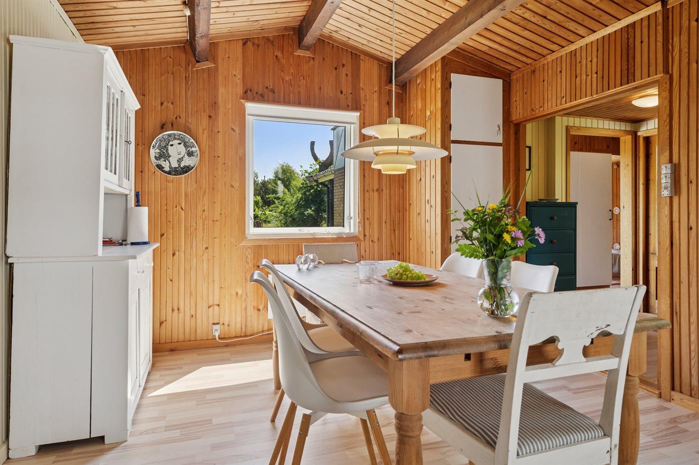 Huset indeholder et dejligt køkkenalrum, hvor der er rig mulighed for at hygge sig og være sammen. Fra den lyse stue med brændeovn er der udgang til terrassen og den store have, hvor der rig mulighed for at nyde det gode vejr og lege med børnene. Under den overdækkede del af terrassen er god mulighed for at finde skygge og læ og nyde de lange lyse sommeraftener. I selve huset er der 1 soveværelse med dobbeltseng. I det tilstødende anneks er der 2 dobbeltsenge med i alt 4 sovepladser.