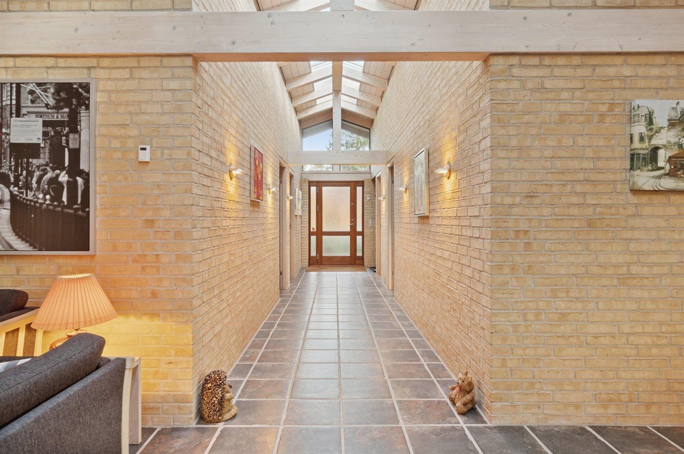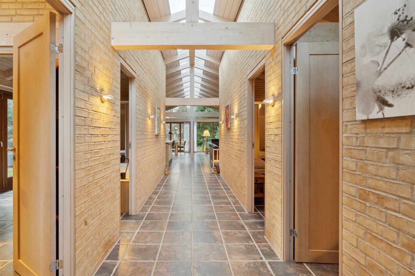 Huset har et boligareal på hele 134 kvadratmeter og overalt er der højt til loftet med loft-til-kip i alle rum. Der er et flot lysindfald fra de store vinduespartier og fra lysbåndet i taget. For at understrege husets høje kvalitet kan der nævnes, at der blandt andet er vand-båren gulvvarme i hele huset.