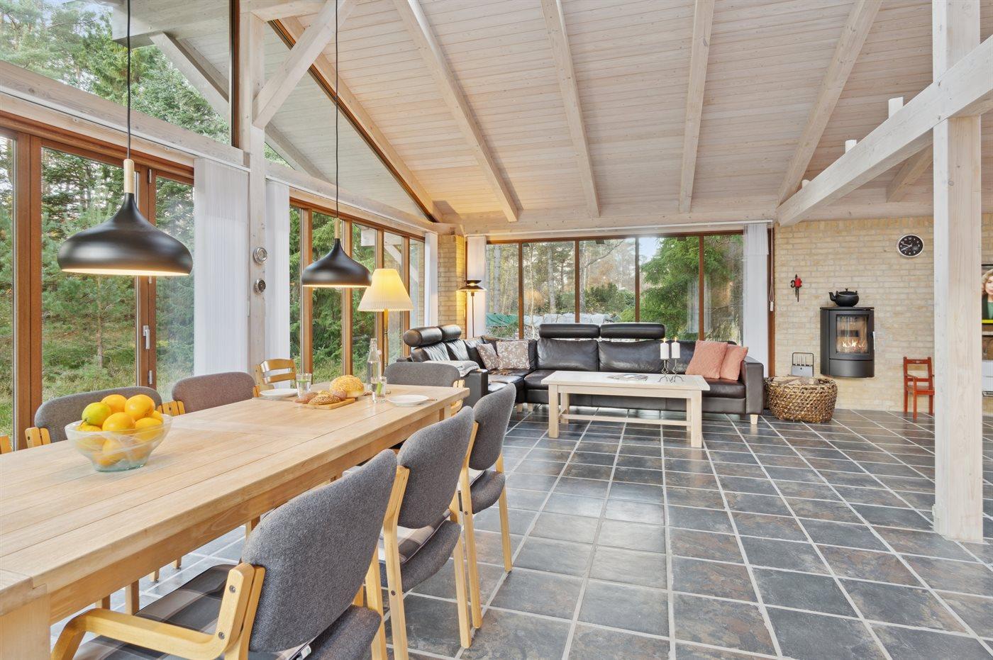 Dette rummelige sommerhus i håndværksmæssig høj kvalitet og med flotte detaljer er beliggende på en stor og skøn naturgrund ikke langt fra Nykøbing Sj. og kun 1100 meter fra en af Danmarks bedste og mest børnevenlige sandstrande.