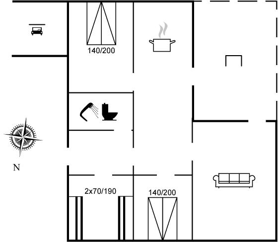 Der er i alt 3 soveværelser. Sovepladserne fordeler sig på: 4 sovepladser i dobbeltsenge. 4 sovepladser i køjesenge. Derudover er der 1 stk. barneseng.