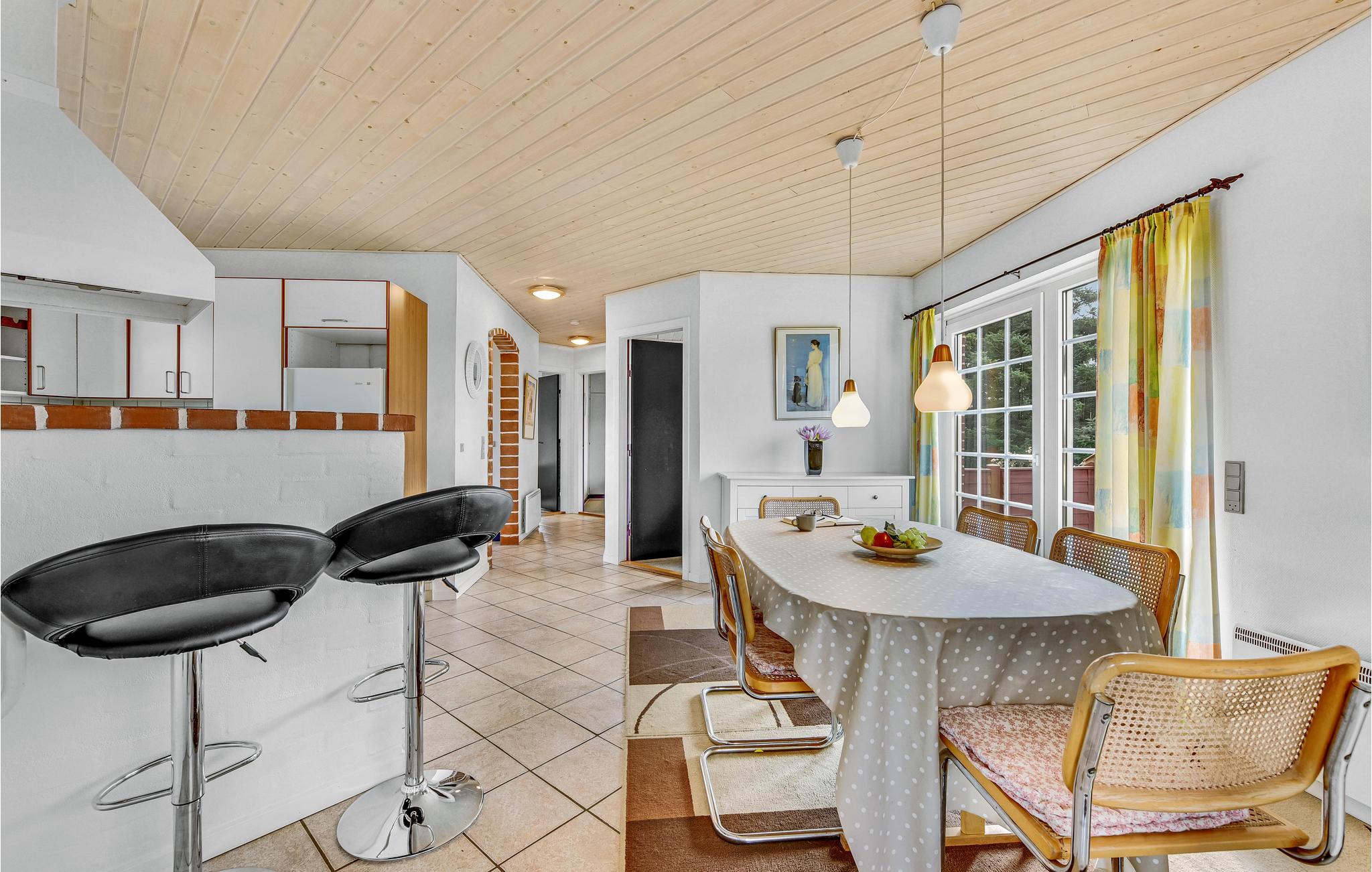 Der er to soveværelser med dobbeltsenge i stueetagen og to enkeltsenge i et kombineret stue/soveværelse på 1. sal. Der hører en bådplads til huset. Fra parkeringspladsen er der trapper op til huset.