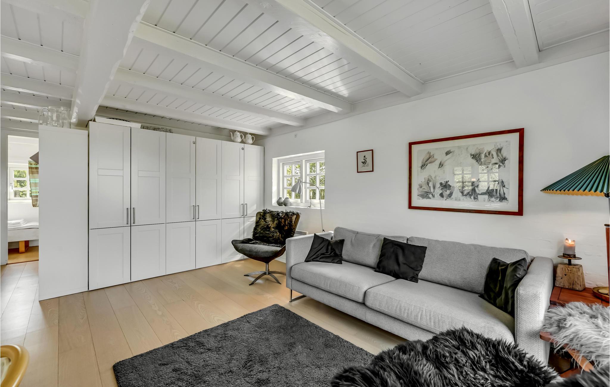 Dette feriehus byder jer velkommen i skønne naturomgivelser, blot et par hundrede meter fra Nyminde Strøm. Huset med en beroligende, lys atmosfære danner en god base for en oplevelsesrig ferie og er det ideelle sted til en pause fra hverdagens trummerum. Her er der tid til nærvær. Tid til det, I aldrig når, og tid til ingentingen! Den åbne stue med hyggelige sprossevinduer bliver centrum for de mange fælles aktiviteter, der venter. Nyd jeres feriemåltider på den åbne terrasse og slik sol, mens jeres børn boltrer sig på naturgrunden. Gå en tur ned til Nyminde Strøm og betragt den smukke natur.