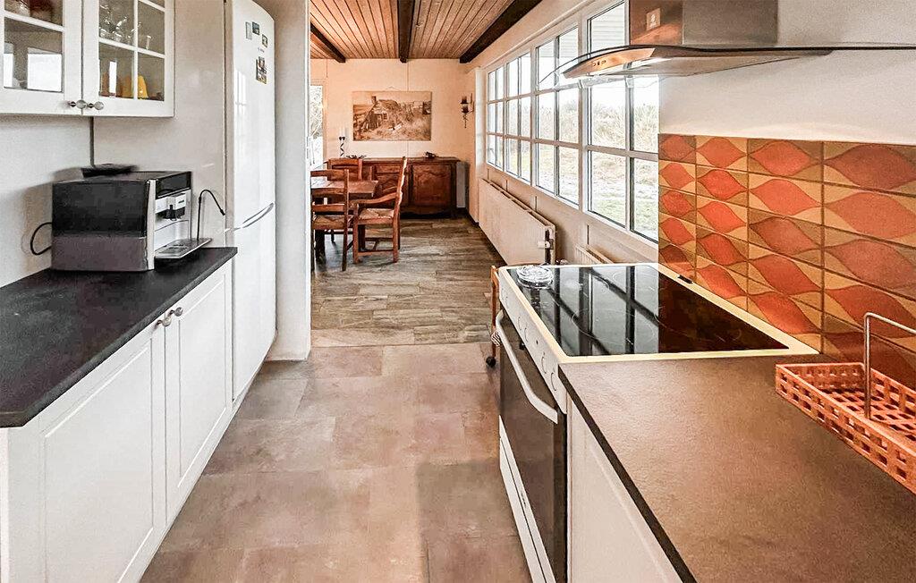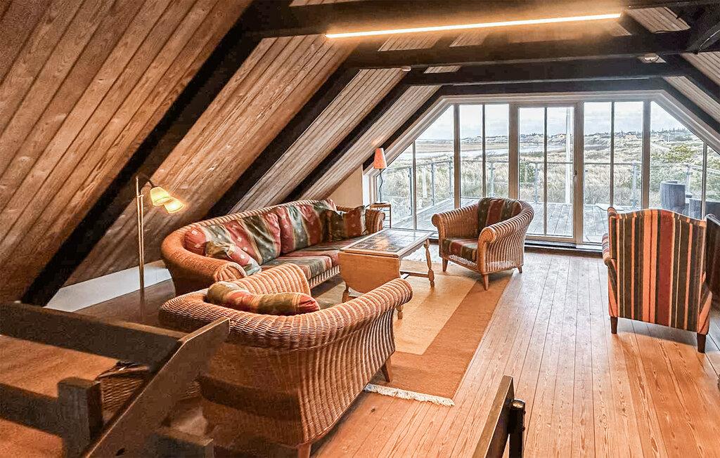 I rolige omgivelser, omgivet af bløde klitter, venter dette indbydende feriehus på jer med god plads til en behagelig ferie. Brug de store opholdsrum til at lave mad sammen, afprøve nye opskrifter og nyde måltiderne i hyggeligt samvær omkring det store spisebord. Hyg jer sammen efter aktive dage, vælg et brætspil til en underholdende aften, eller læn jer tilbage og se en film sammen.