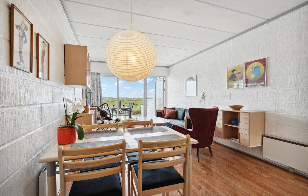 Skøn ferielejlighed i Nymindegab med en pragtfuld udsigt over Ringkøbing Fjord og klitter. Lejligheden ligger på en dejlig naturgrund med egen terrasse. Sæt jer til rette i havemøblerne og drøm jer væk, mens I nyder udsigten over naturen og vandet og har følelsen af komplet fred og frihed. Den hyggelige møblering og indretning med hjemlig atmosfære, er med til at skabe et perfekt ferieophold. Der er et dejligt soveværelse med en dobbeltseng samt en sovesofa i stuen, så her er plads til i alt fire personer i ferieboligen.