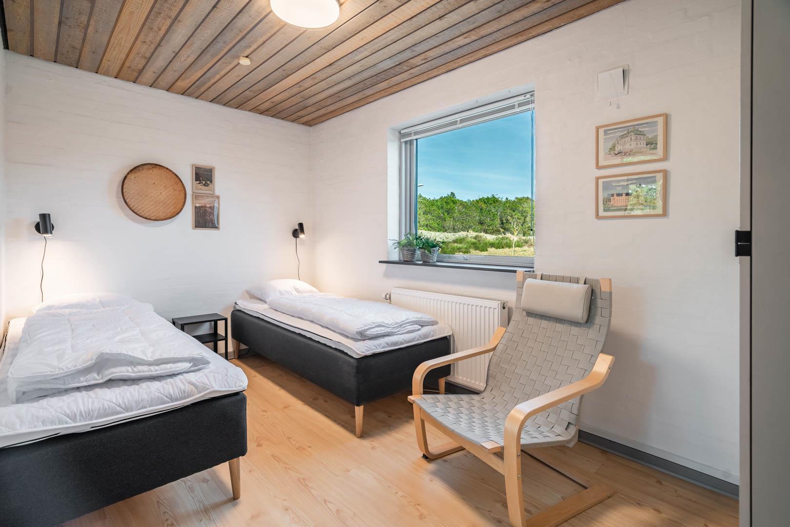 Sommerhuset har fire soveværelser med rolige farver og enkel indretning, som indbyder til afslapning. To badeværelser, begge med gulvvarme, giver ekstra komfort, især når I rejser flere sammen.