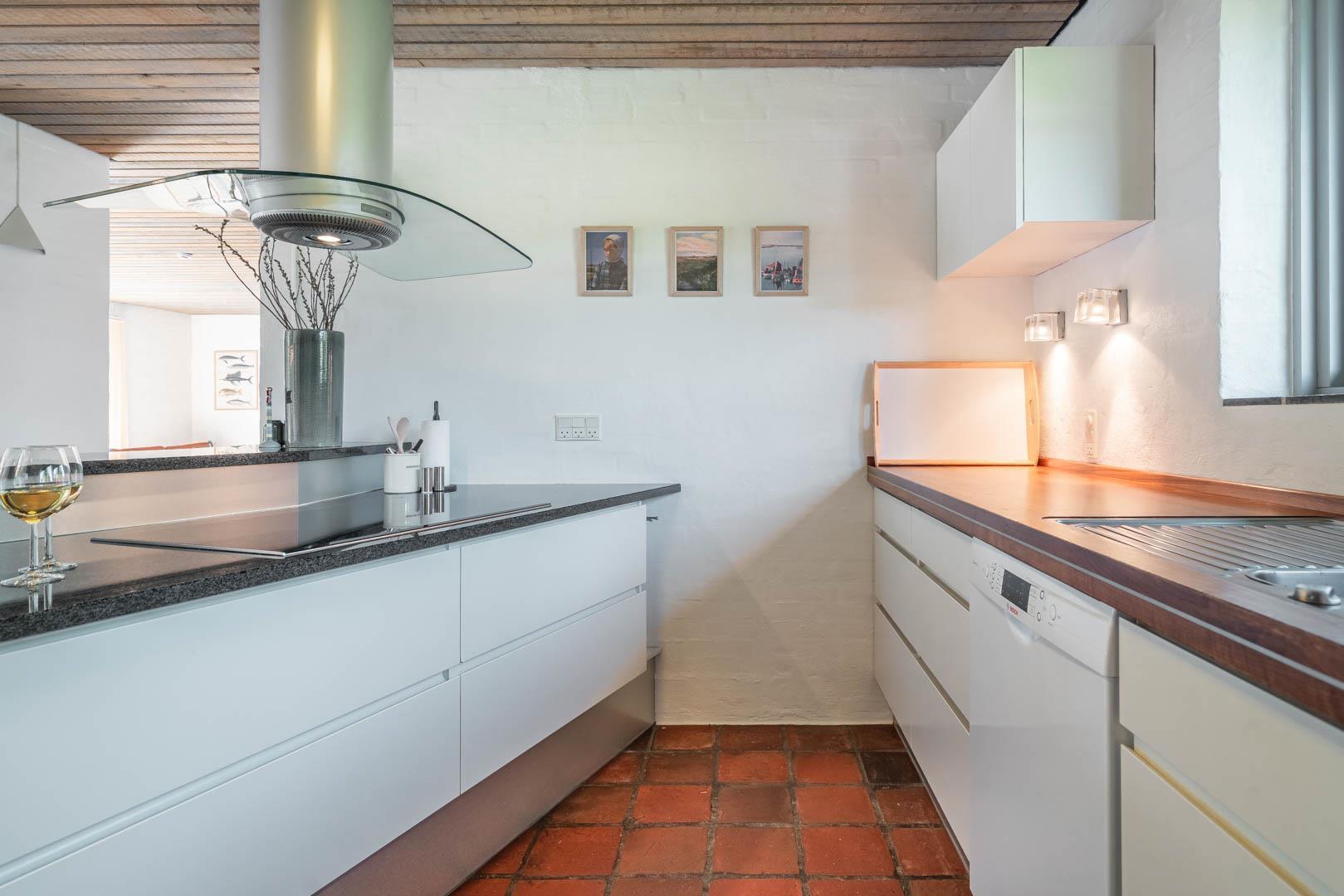 Det åbne køkken er både funktionelt og elegant indrettet med alt, hvad I behøver – herunder opvaskemaskine, god bordplads og gulvvarme. Ved det store spisebord er der plads til hele familien – uanset om I spiser morgenmad med udsigt til naturen eller nyder en hyggelig middag, mens mørket falder på.