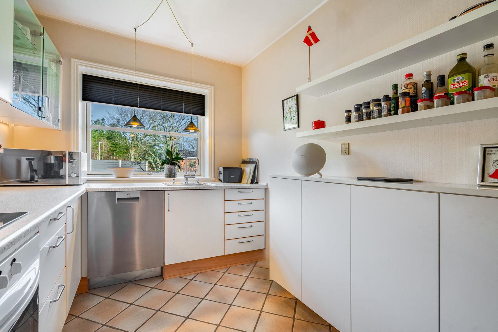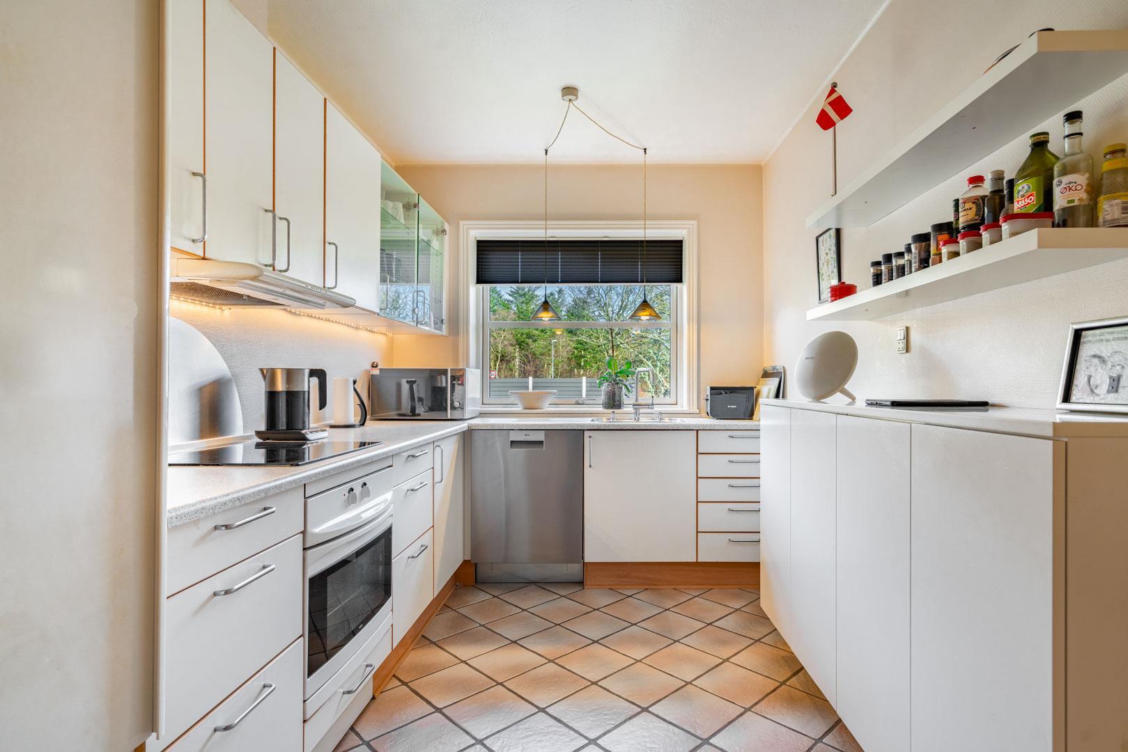 Det åbne køkken er funktionelt og veludstyret, så madlavningen bliver en fornøjelse. Her finder I opvaskemaskine, god bordplads og alt, hvad I skal bruge til at tilberede lækre måltider sammen.