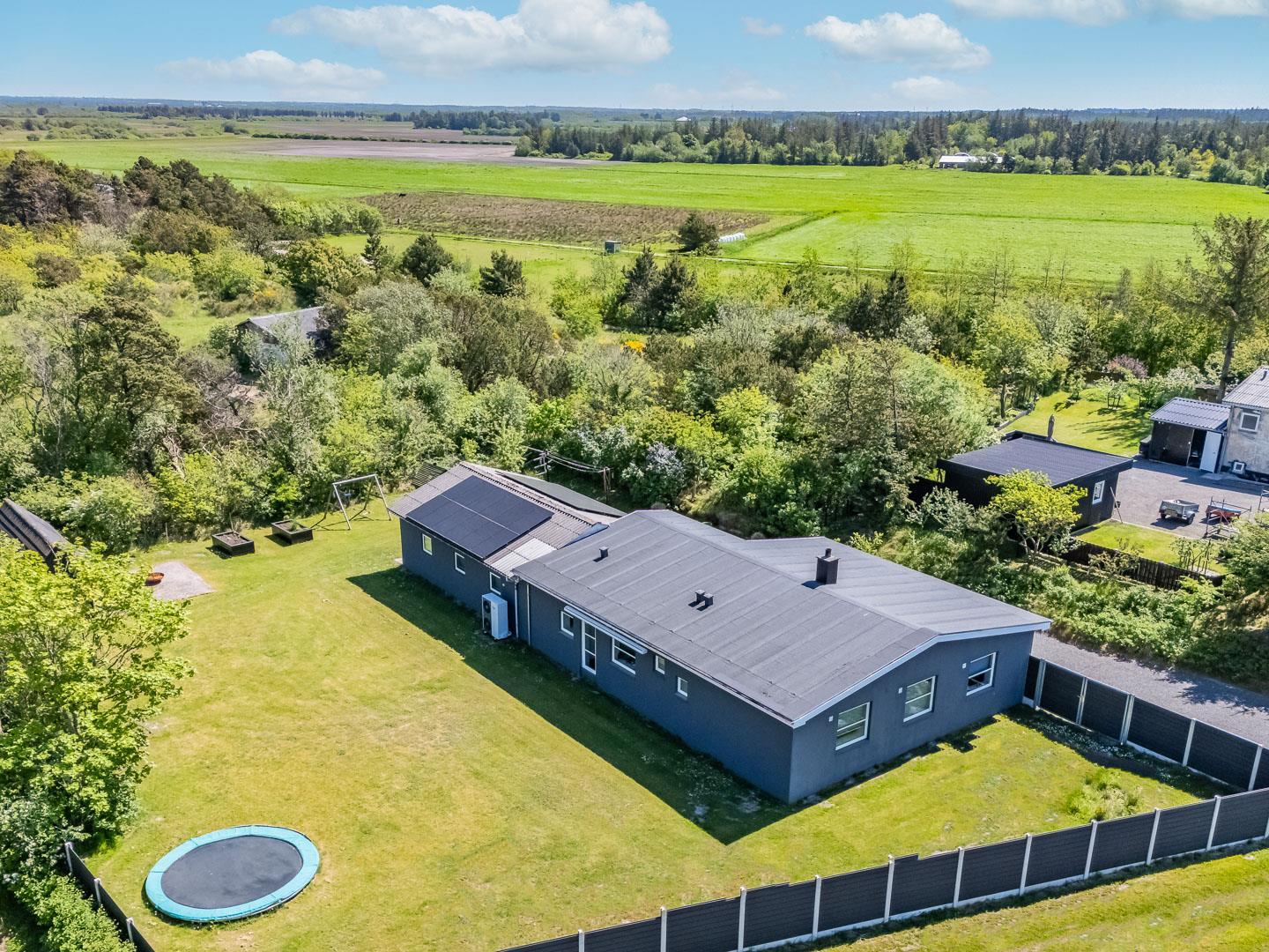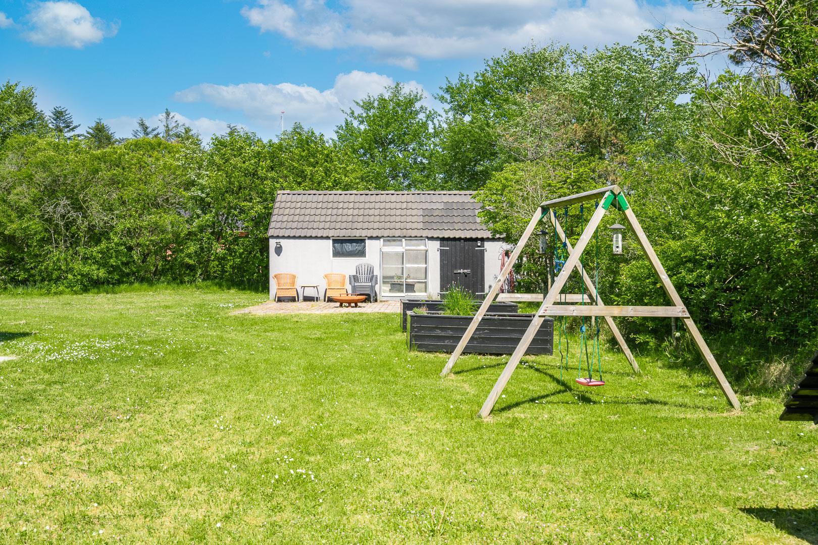 Grunden omkring sommerhuset er indhegnet, så I trygt kan have hunden med på ferie. Her er god plads til leg og afslapning, mens I nyder roen og privatlivet omkring sommerhuset.