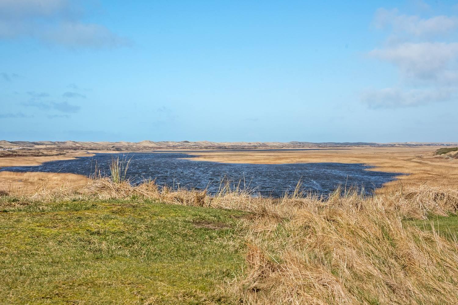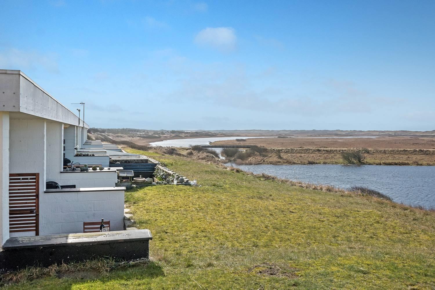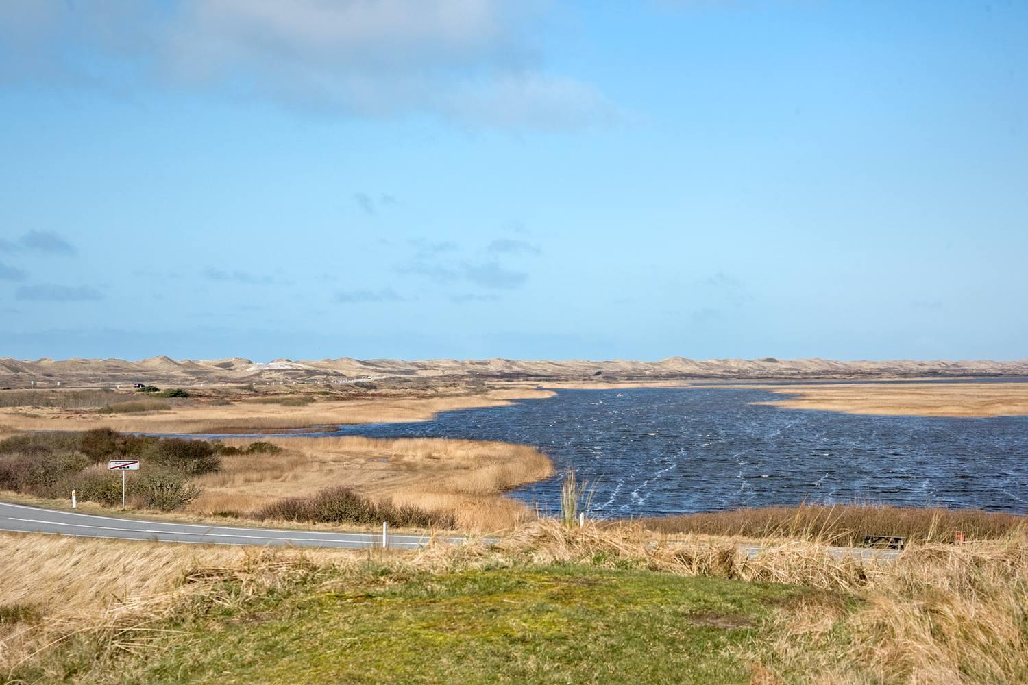 Særligt smukt: Fra jeres terrasse nyder I udsigten over klitterne, det vidtstrakte naturområde i Nymindegab og fjorden. Om morgenen ledsages I kun af fuglesang og vindens blide susen i græsset – en sand velvære for krop og sjæl.