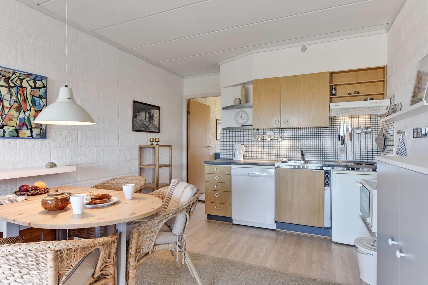Køkkenet er fuldt udstyret med opvaskemaskine, keramisk komfur og køleskab – alt, hvad I skal bruge til nem madlavning på ferien.