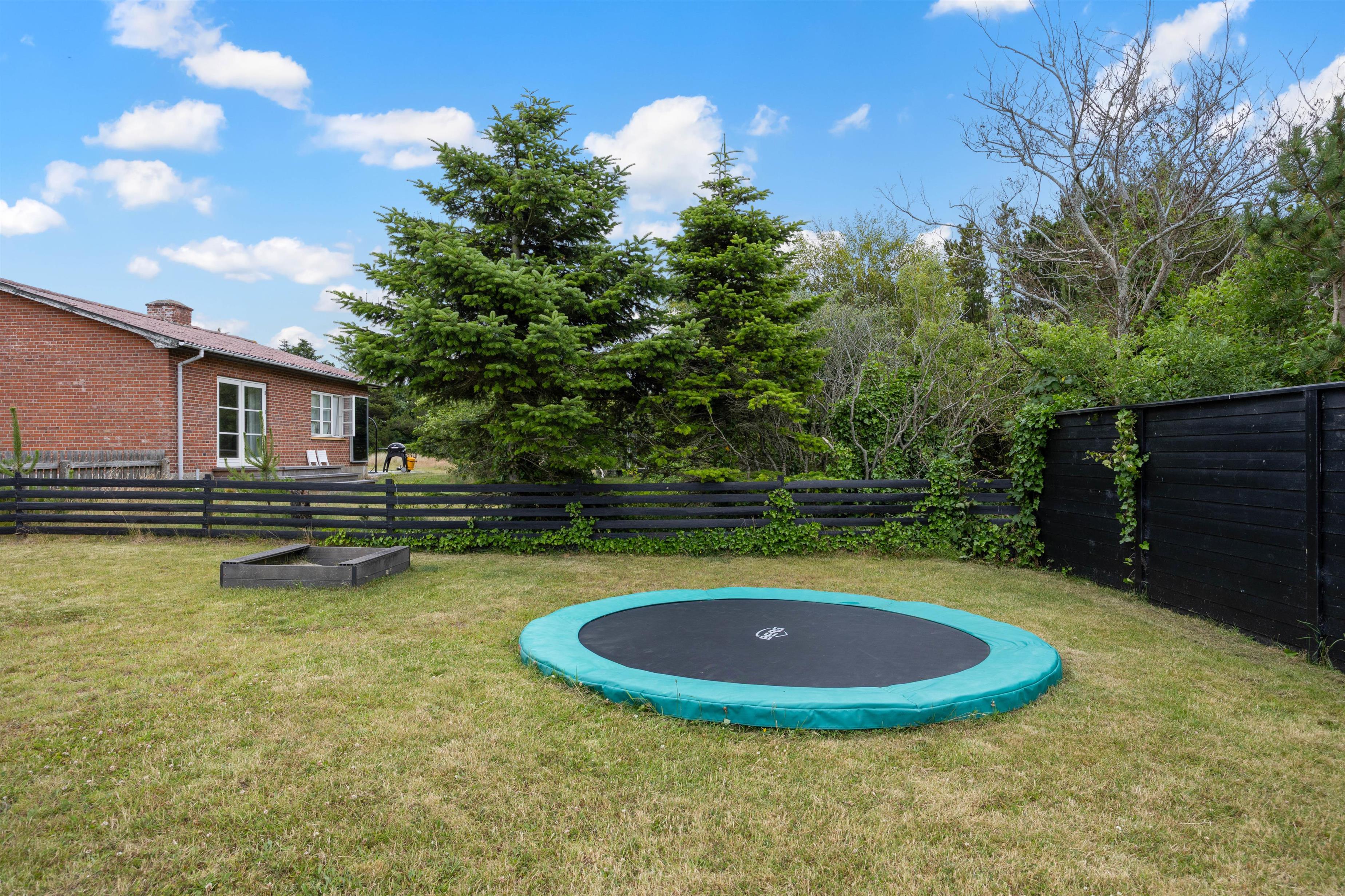 Haven er indhegnet og derfor et oplagt valg for både småbørnsfamilien og hundeejere. Med trampolin og sandkasse kommer familiens mindste ikke til at kede sig. Den grønne plæne indbyder til sjov og spas for hele familien.