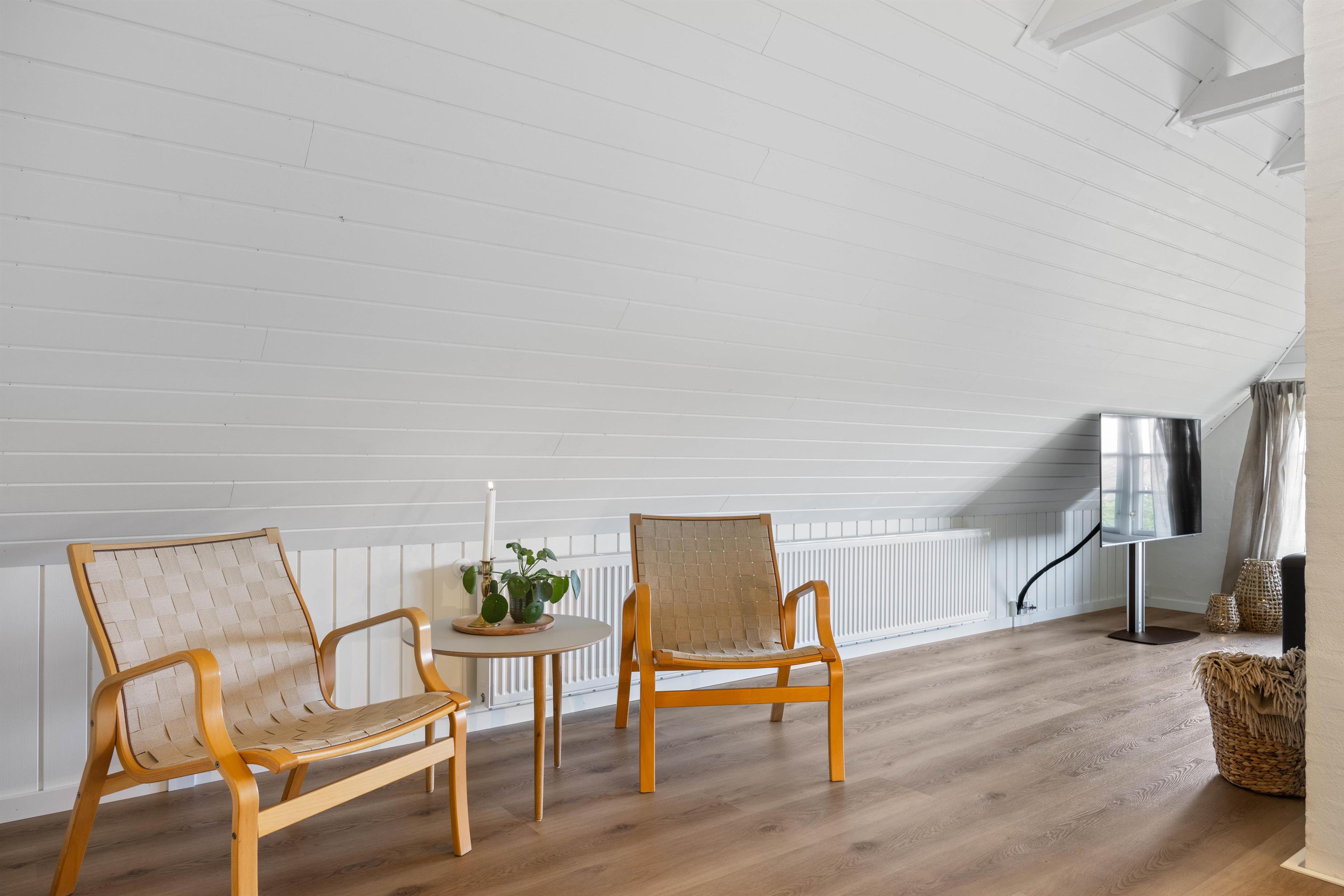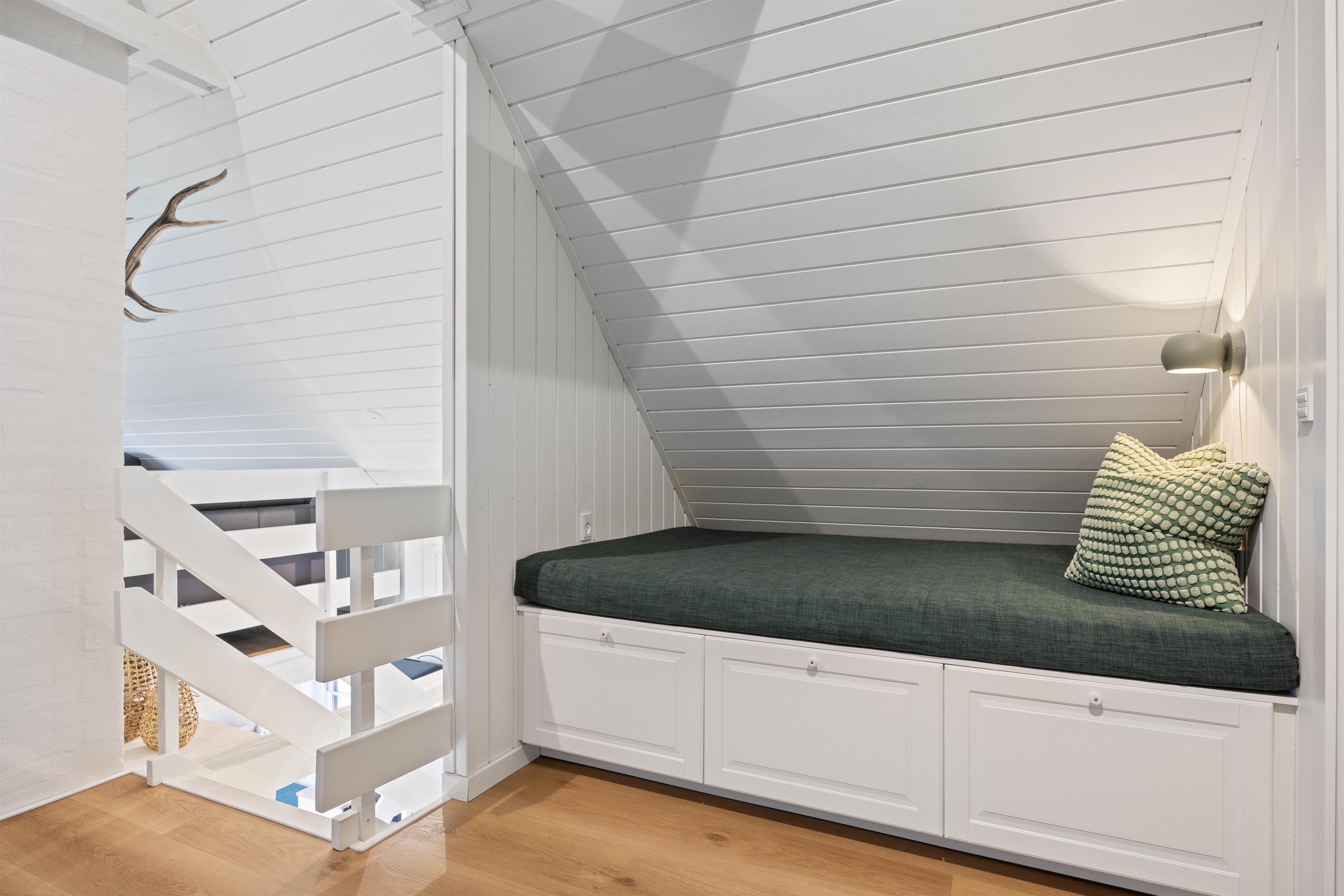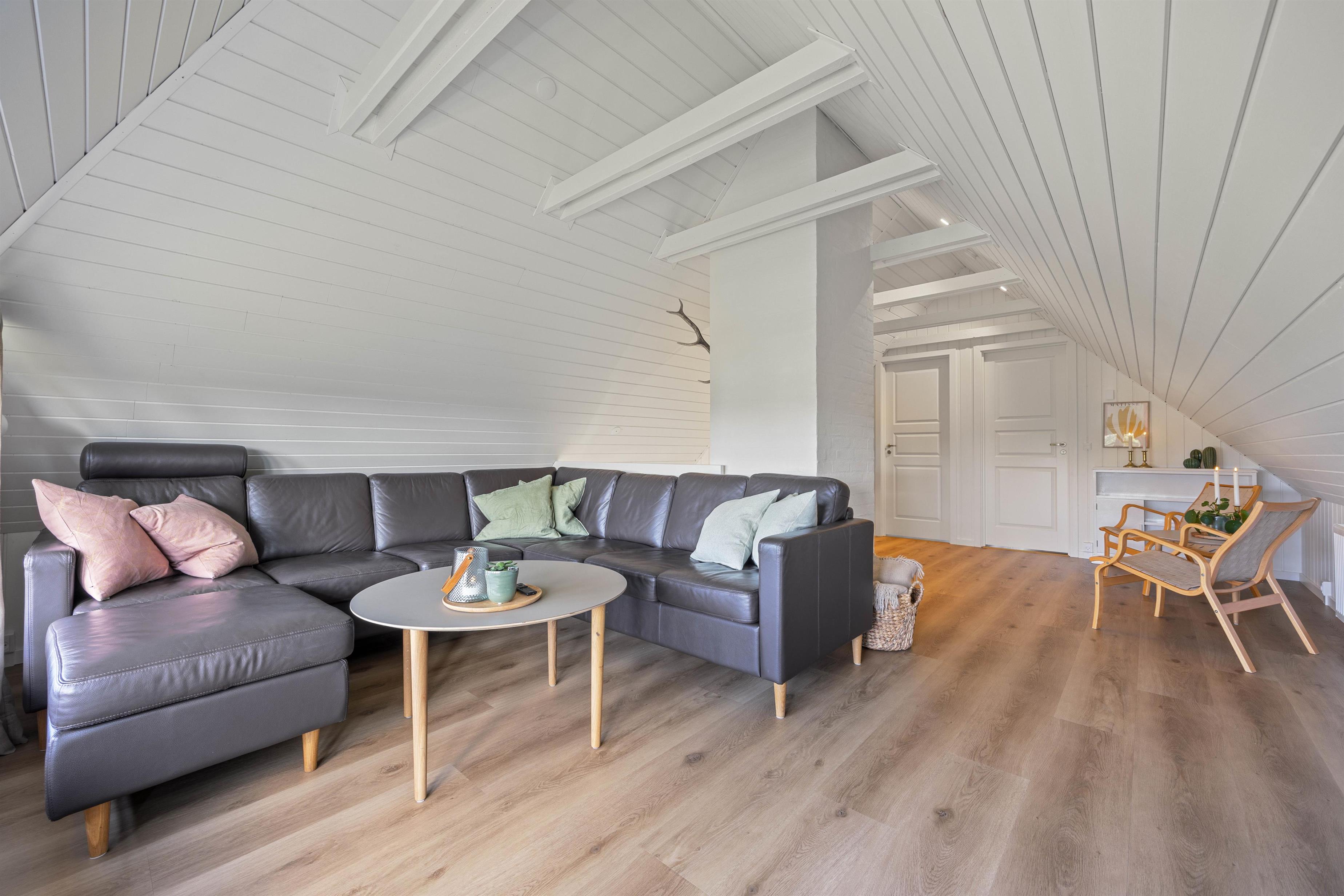 I den hyggelige opholdsstue på 1. sal møder I åbne loftsbjælker, en komfortabel sofa og et fjernsyn med Chromecast, hvor I kan streame jeres yndlingsfilm og -serier. Her er også en hyggelig alkove, hvor man kan trække sig tilbage med en god bog eller et mobil-spil. 2 af soveværelserne med komfortable dobbeltsenge er placeret på øverste etage, mens det 3. soveværelse med 1 dobbeltseng ligger i stueetagen, så I kan fordele sengepladserne, som det passer jer bedst.