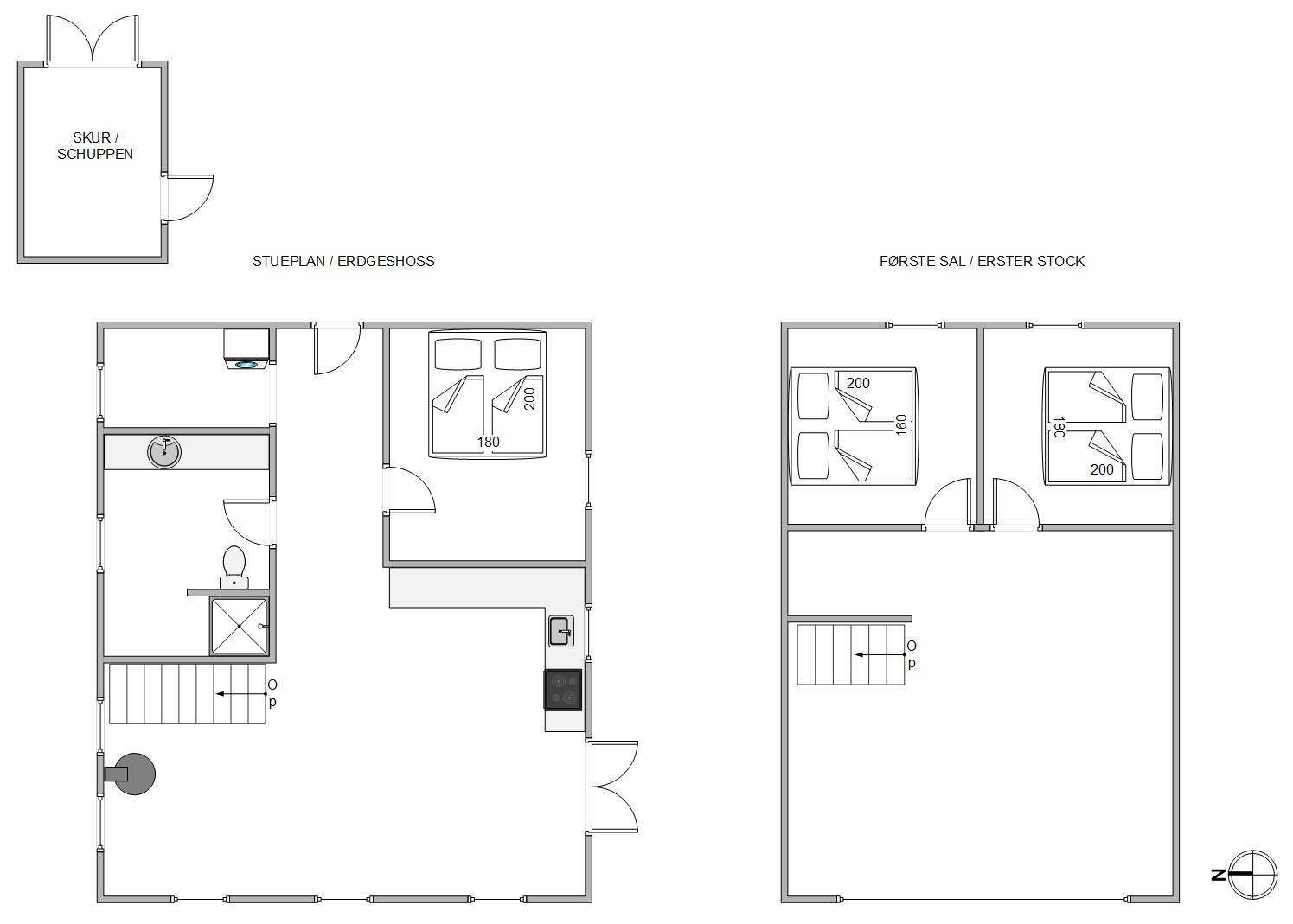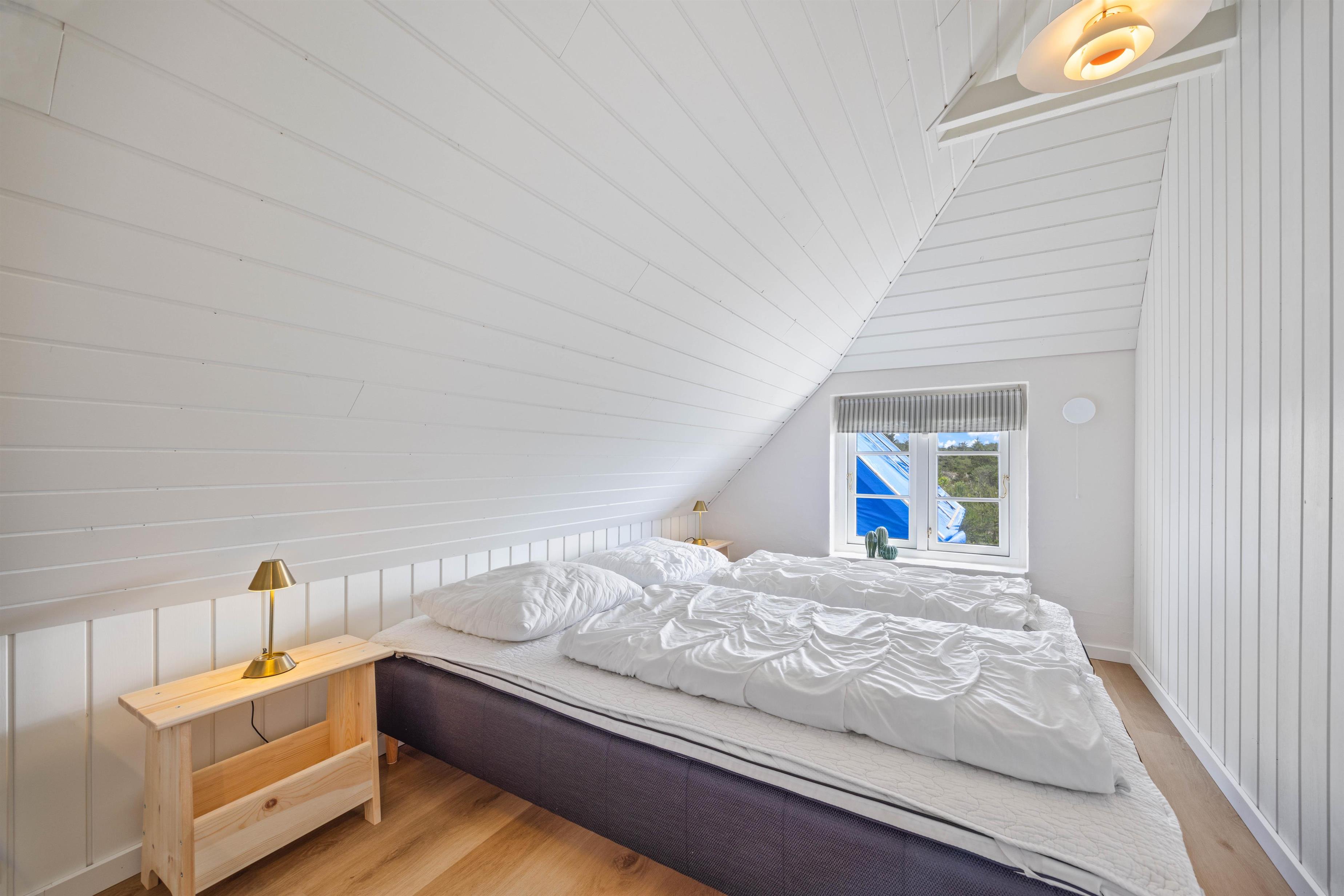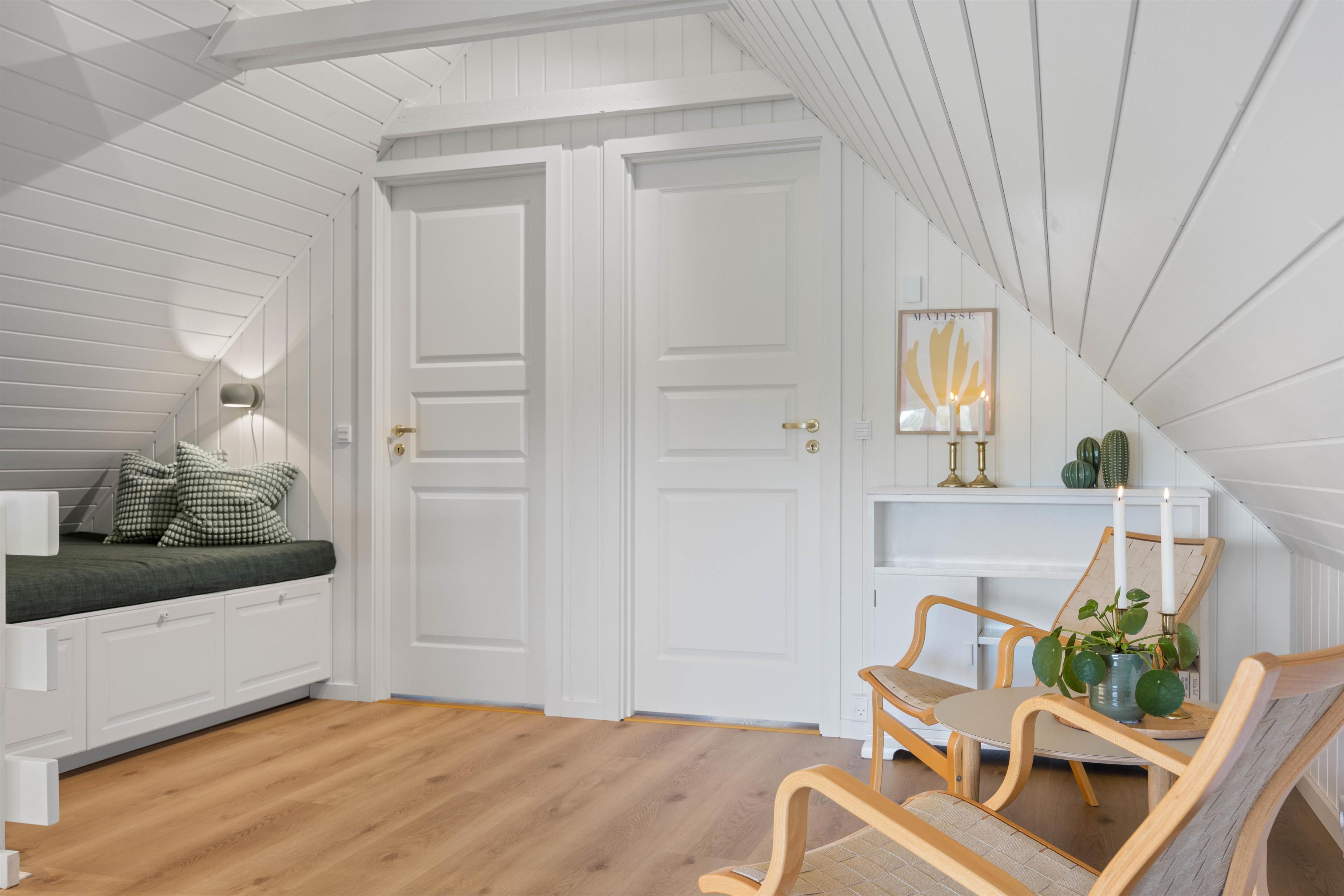I den hyggelige opholdsstue på 1. sal møder I åbne loftsbjælker, en komfortabel sofa og et fjernsyn med Chromecast, hvor I kan streame jeres yndlingsfilm og -serier. Her er også en hyggelig alkove, hvor man kan trække sig tilbage med en god bog eller et mobil-spil. 2 af soveværelserne med komfortable dobbeltsenge er placeret på øverste etage, mens det 3. soveværelse med 1 dobbeltseng ligger i stueetagen, så I kan fordele sengepladserne, som det passer jer bedst.