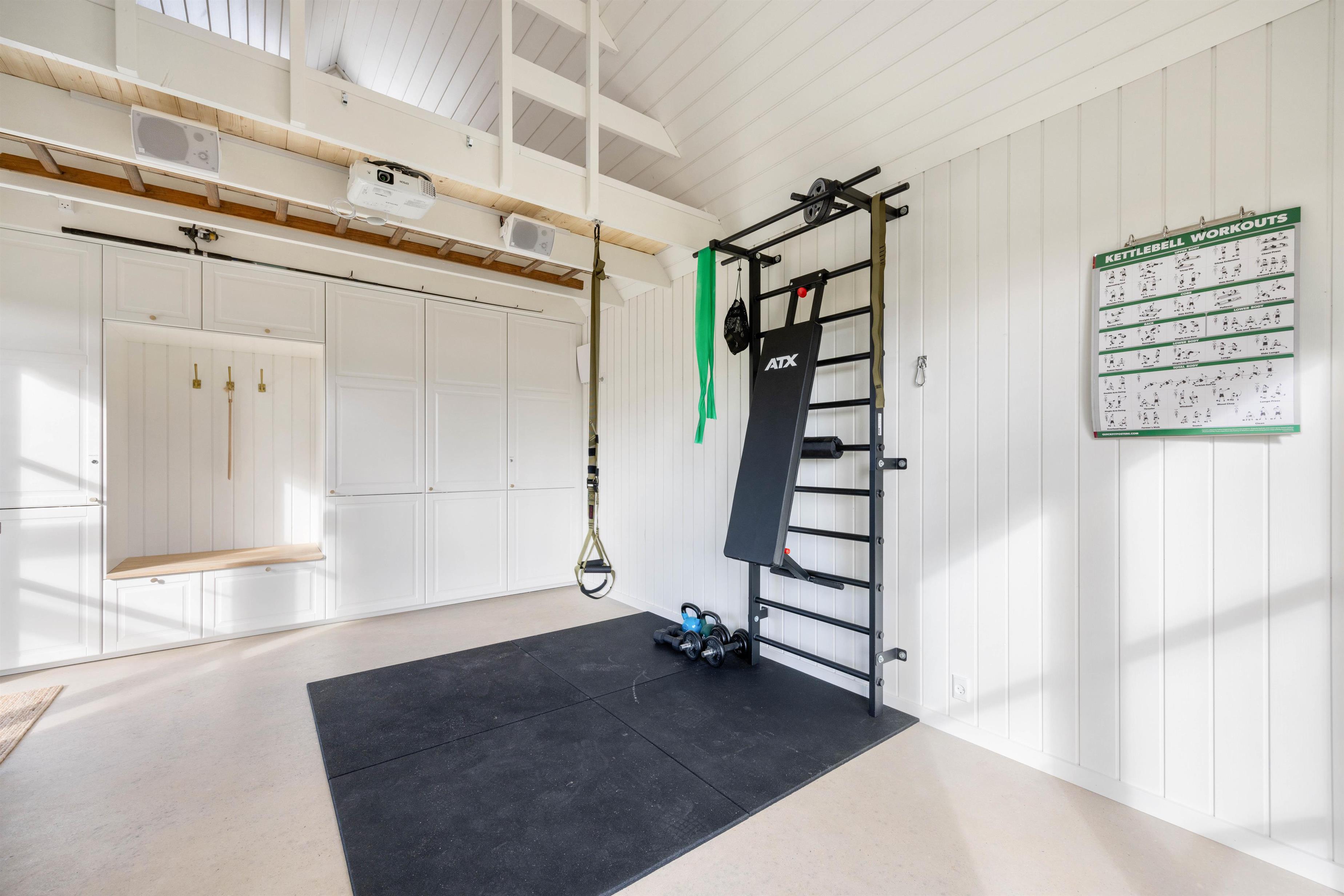 I sommerhusets skur finder i et fint multirum, der er bygget i 2025. Her kan der trænes og ses film på lærred med projekteren. Både store og små kan her få mange hyggelige timer til at gå.