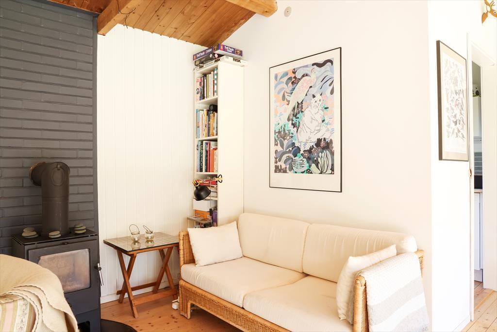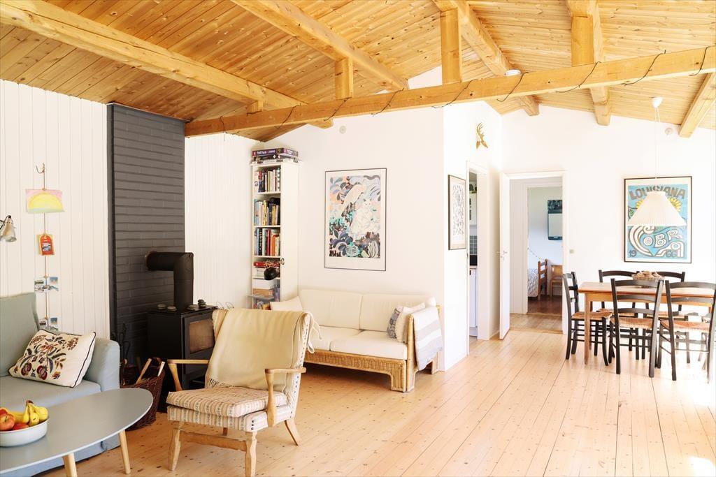 Særdeles hyggelig stue med dejlig spiseplads, her er der både brændeovn og varmepumpe og så er der internet med mulighed for at streame, samt Appel tv med mulighed for Netflix og HBO. I forbindelse med stuen er der et dejligt åbent køkken, her kan I hjælpes med at tilberede frokosten. Dejligt badeværelse med brus og to soveværelser, det ene med dobbeltseng, det andet med to enkeltsenge. Fra stuen er der udgang til husets terrasse, her kan du nyde solen fra morgen til aften, tilberede friskgrillede fisk og betragte rådyrene der jævnligt krydser haven. Husk også at benytte bålpladsen.