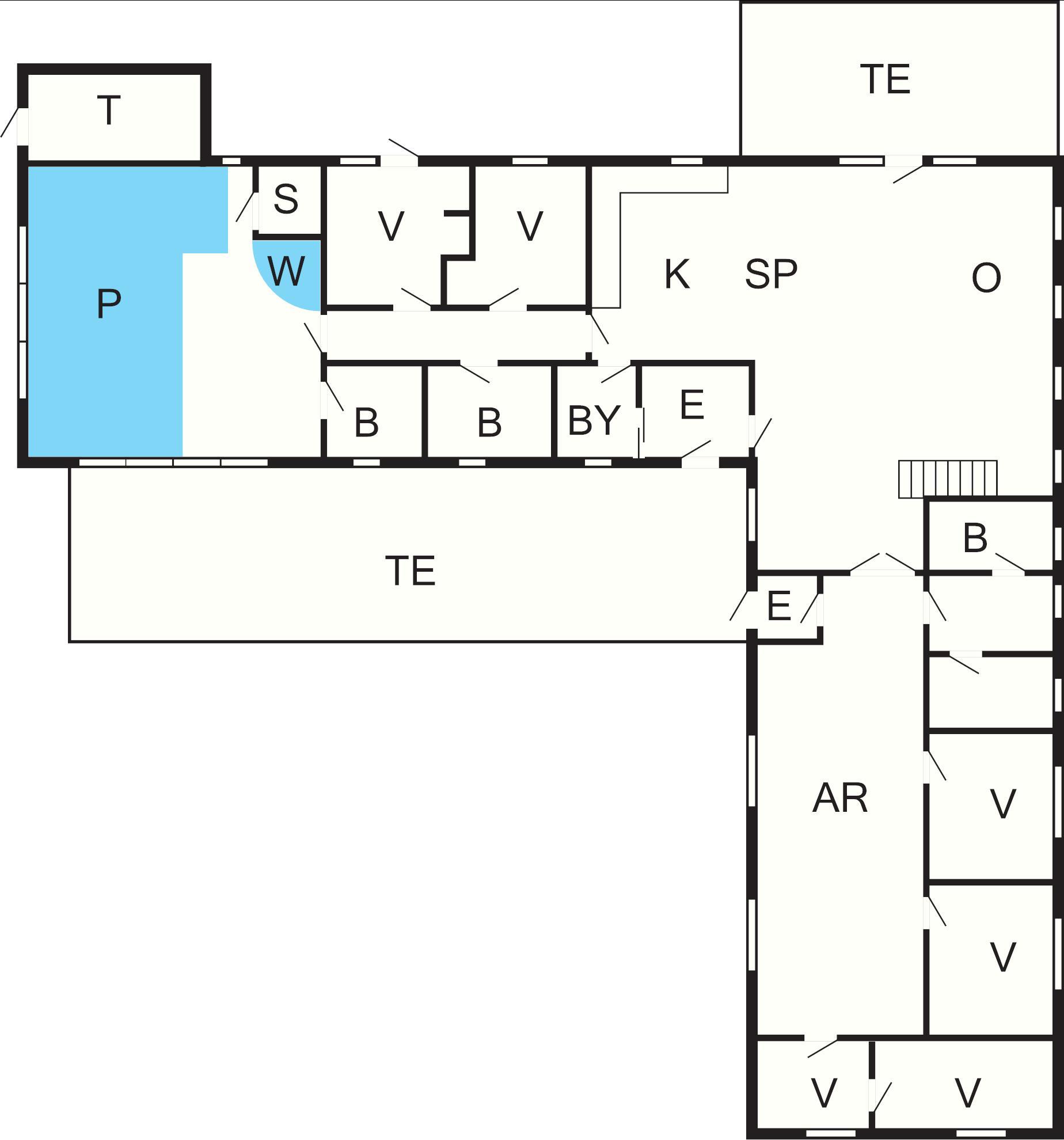 6 Soveværelser: (1DS)+(1DS)+(1DS)+(1DS)+(2S)+(2K)