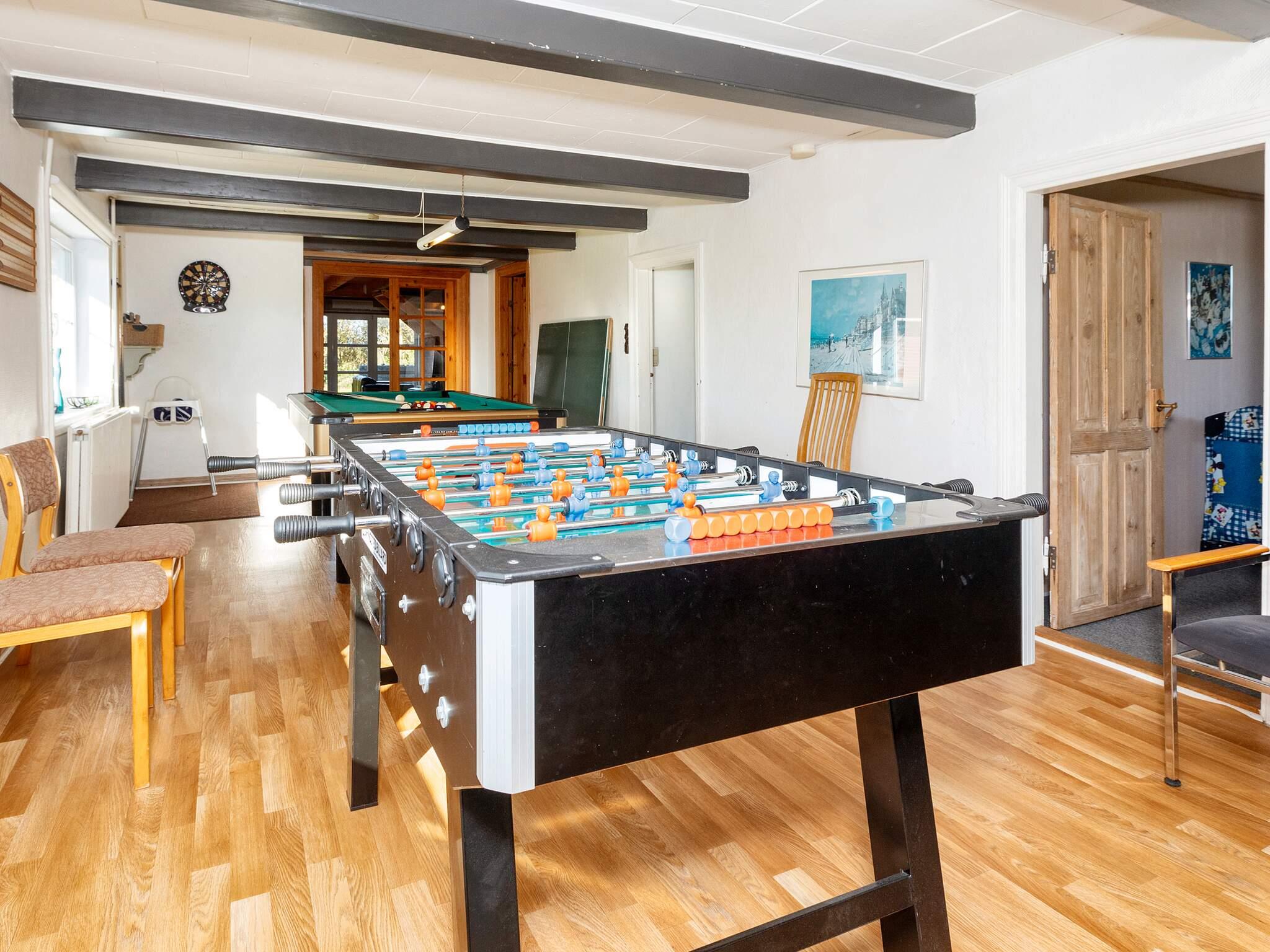Dette 300 m² store og rummelige poolhus ligger i et meget naturskønt område lige ned til fjorden, fra den 4700 m² store grund er der udsigt over vandet. Ønsker man lidt aktivitet i sin ferie, har dette hus lidt af hvert. Stort rummeligt aktivitetsrum med billardbord, bordfodbold, bordtennis og dart. Udenfor er der fodboldmål, gynger og sandkasse. I feriens solrige dage kan man tage en badetur i Limfjorden kun 500 m derfra eller nyde solen på terassen, som er udstyret med havemøbler og grill. Huset er et gammelt landsted som er renoveret i 1998. De 2 badeværelser er med toilet, håndvask, bruseniche og gulvvarme samt 1 badeværelse med badekar. Poolhuset opvarmes med varmepumpe og oliefyr samt den hyggelige pilleovn. Poolhuset har 14 sovepladser: 4 værelser med dobbeltsenge, 1 værelse med 2 enkeltsenge 1 værelse med 2 køjepladser max. længde 1,70 m samt 1 hems til 4 personer.
