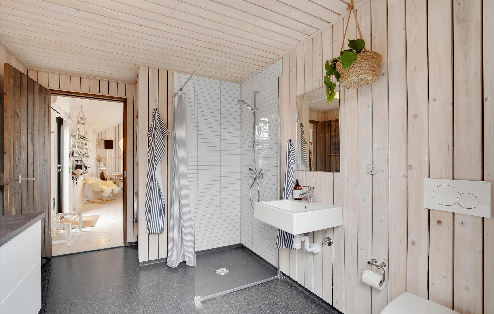 Indendørs vil dette smukke træhus imponere jer med dets hygge og smukke detaljer som den integrerede pejs i stuen. Efter en lang gåtur på stranden kan I slappe af i den komfortable sofa, hvorfra I har en fantastisk udsigt over fjorden. Der er også 3 smukke soveværelser og 1 badeværelse.