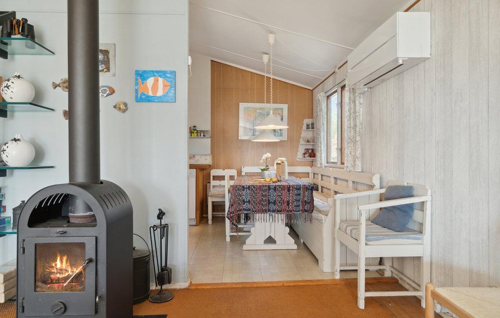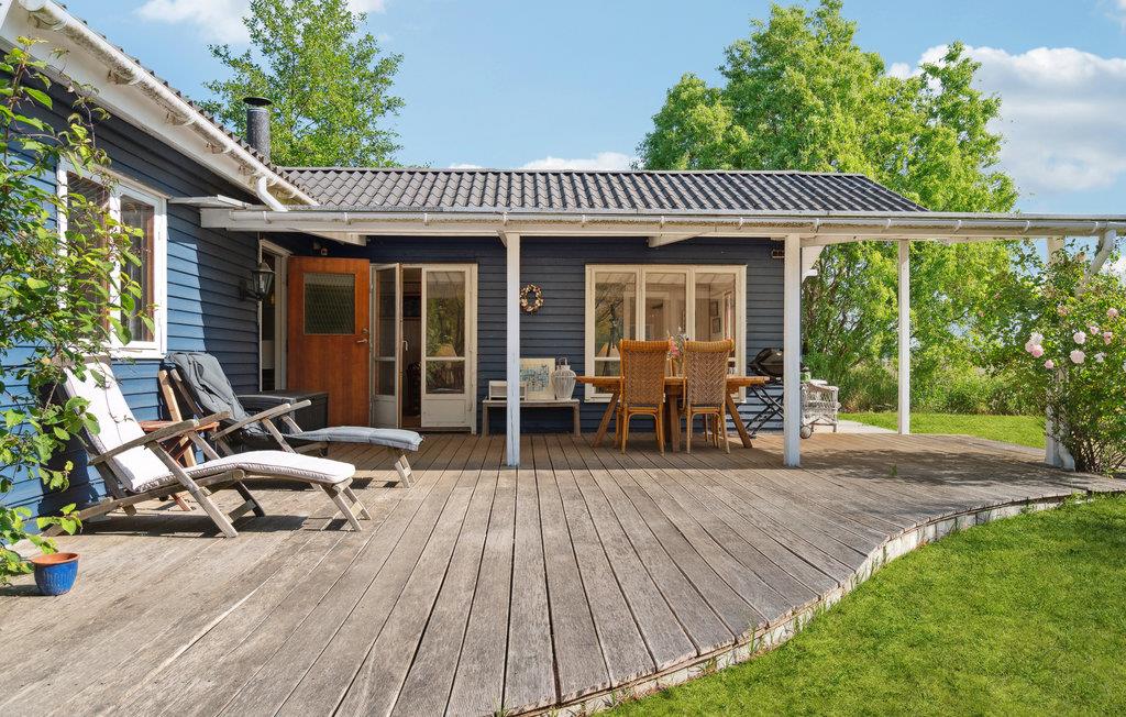 I kan se frem til nogle fredfyldte feriedage i dette charmerende hus, som ligger på en flot åben grund på smukke Orø. Det blå hus er velindrettet med stemningsfulde indretningsløsninger, et godt lysindfald og en varm atmosfære. Skulle I være i tvivl om naturens nærhed, vil naturtapetet og det blomstrede sofaarrangement minde jer om det på bedste vis! Om aftenen kan I se en film sammen, få varmen foran brændeovnen eller grille i haven og nyde maden på den overdækkede terrasse. Den store have giver børnene masser af plads til at boltre sig og have det sjovt med boldspil. Med vandet lige uden for døren kan I på daglig basis tage en frisk dukkert eller kaste fiskestangen ud.