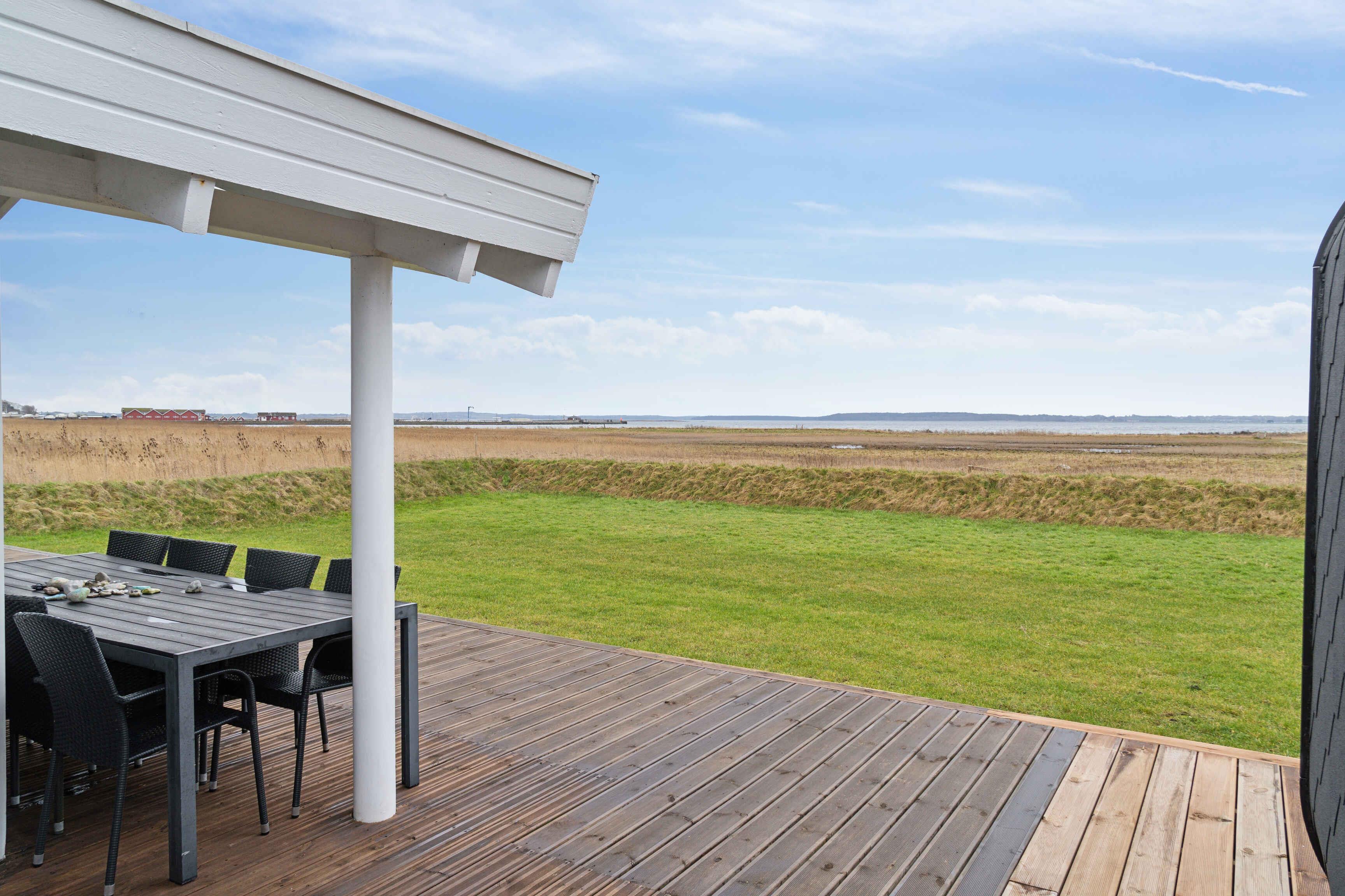 Hyggeligt sommerhus på Orø med panoramaudsigt, sauna og stor terrasse tæt ved havnebadet.