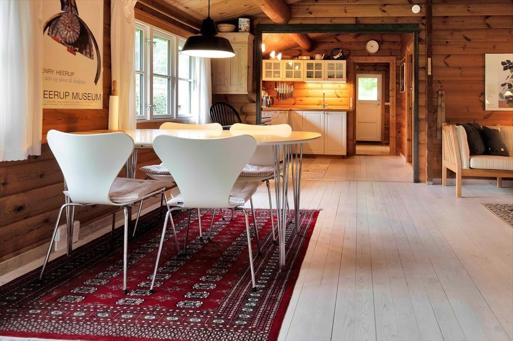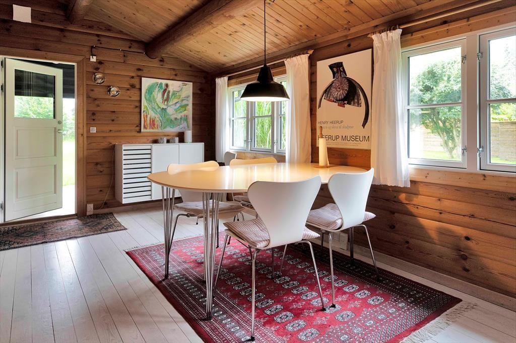 Dette rummelige sommerhus, som ligger fredeligt og centralt i Ordrup, danner rammen om en ferie fuld af aktiviteter. Sommerhusets indvendige bjælker, emmer af hygge og når brændeovnen bliver tændt, skaber det en helt unik stemning. Ved spisebordet i den rummelige stue kan du underholde ”kokken” mens det syder i gryderne, og det er også her, I kan tale om dagens oplevelser og planlægge morgendagens aktiviteter. I sofahjørnet kan I samles om spil og nyde varmen fra brændeovnen, hvis det skulle blive køligt. Når aftenen går på hæld, er det bare at lægge sig i sengene, så falder du hurtigt i søvn.